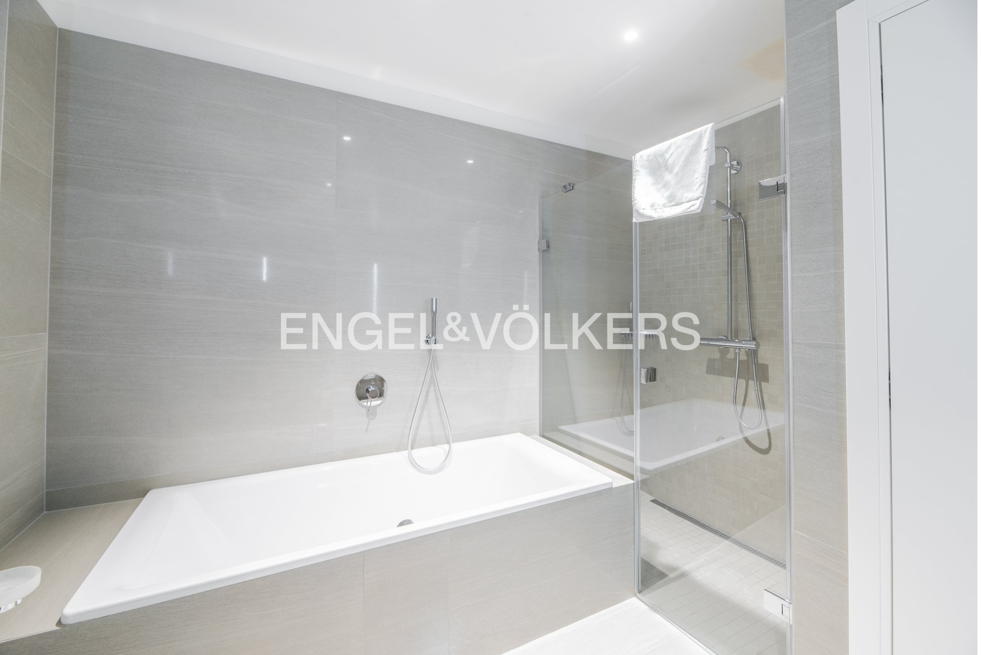 Byt je kompletně vybaven kvalitním italským nábytkem – k dispozici jsou křesla, rozkládací sedačka, jídelní stůl se židlemi, šatní skříně i komody. Kuchyň je plně zařízena včetně velkokapacitní lednice, indukční varné desky, horkovzdušné i mikrovlnné trouby, myčky nádobí a kompletního vybavení na vaření včetně nádobí a skla. Okna jsou osazena zvukově izolačními trojskly, komfort bydlení doplňuje rekuperační systém výměny vzduchu. Koupelna je provedena ve vysokém standardu s velkoformátovými obklady.