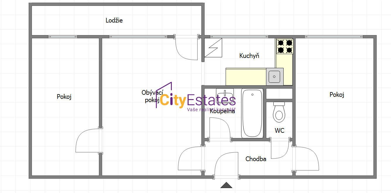 Byt působí příjemným dojmem, má oblíbené umístění pokojů. Dvě ložnice jsou po stranách a ve středu bytu se nachází obývací pokoj a kuchyň s velkým oknem. Koupelna má vanu, WC je samostatné. Z obývacího pokoje vstoupíte na velmi prostornou lodžii. Všechny pokoje jsou orientovány na východ, takže je i v horkých letních dnech v bytě příjemně.
