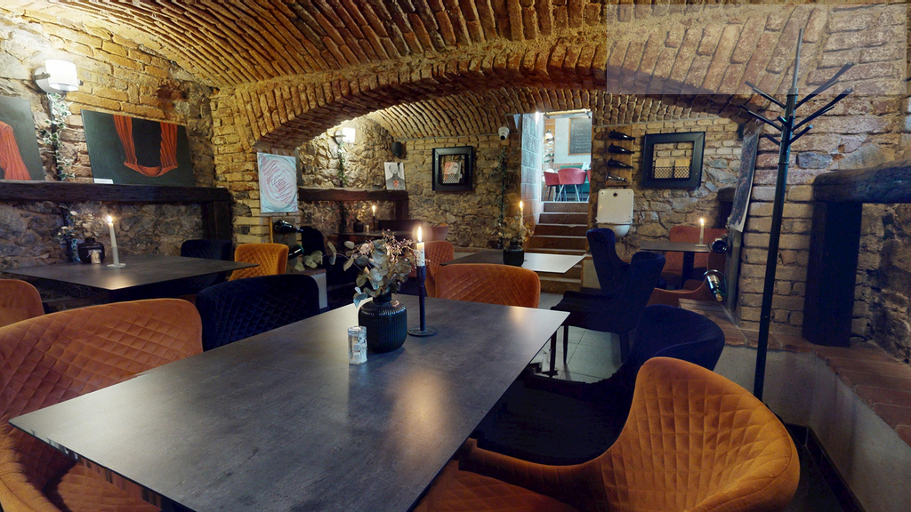 Kapacita 35 míst uvnitř a 15 míst na venkovní terase.