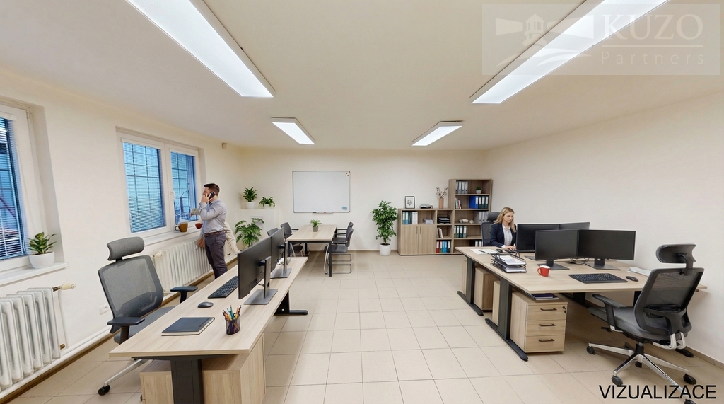 Upozornění: Kanceláře jsou nezařízené, zcela prázdné a připravené k vašim úpravám. Případné vybavené obrázky (vizualizace) slouží pouze pro lepší představu.