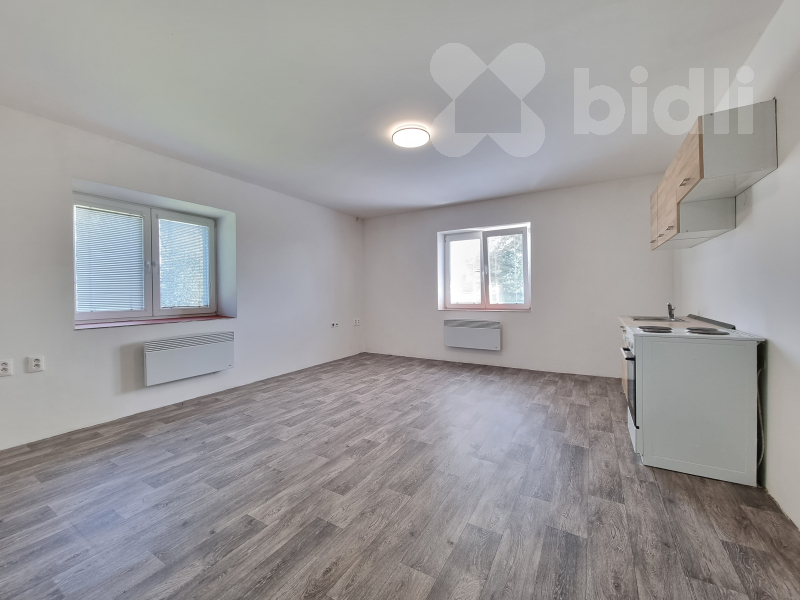 Bytová jednotka se nachází v 1. patře kompletně zrekonstruovaného cihlového domu. K dispozici jsou plastová okna se žaluziemi, kuchyňský kout s elektrickým sporákem a troubou, koupelna se sprchovým koutem a toaletou. Podlahy tvoří PVC a keramická dlažba. Vytápění je řešeno elektrickými přímotopy, ohřev vody zajišťuje elektrický bojler.
