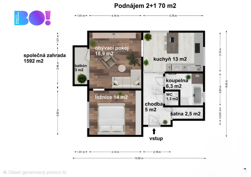 - Dispozice bytu: 2+1