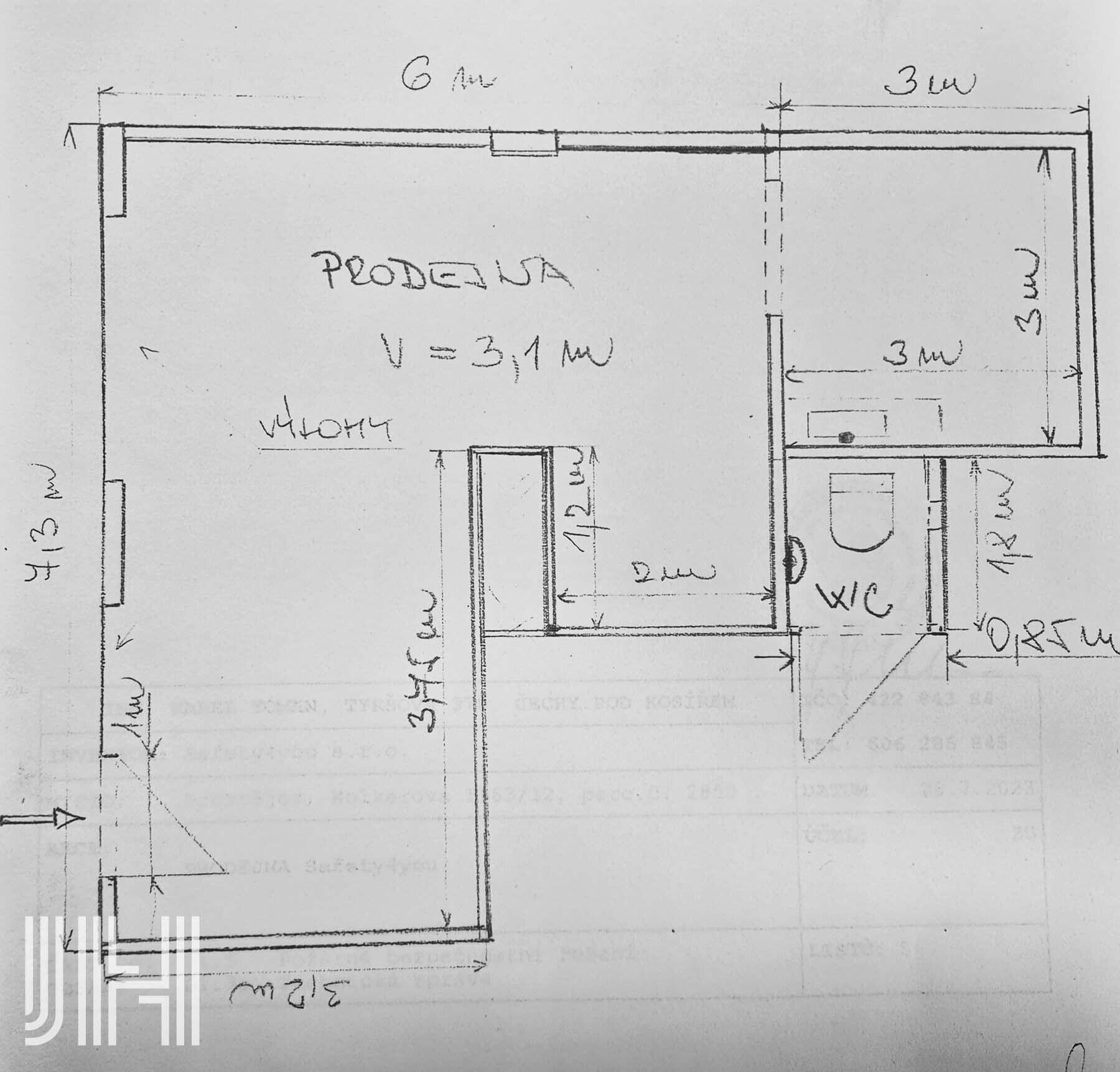 Nabízíme k pronájmu obchod v centru města na frekventované ulici s možností parkování na dvoře domu, nebo na parkovišti přes ulici. Prostory o výměře 44 m2 mají dva výkladce, podlahy kryté kobercem, osvětlení zářivkovými tělesy a umyvadlo. WC je umístěno samostatně v domovní chodbě v průjezdu domu. Prostory mají plynové vytápění plynovým topidlem, vlastní elektroměr, plynoměr a podružný vodoměr. Měřidla se přepisují na nájemce. K obchodu je možné si pronajmout zděnou garáž ve dvoře domu o výměře 49 m2 za 2.000 Kč/měs. pro parkování nebo skladování zboží. Obchod byl dlouhodobě užíván jako prodejna požární techniky. Parkování pro zákazníky je možné i dvoře domu. Prostory jsou volné po dohodě. Měsíční náklady na energie: cca 3.000 Kč/měs. PENB – G.