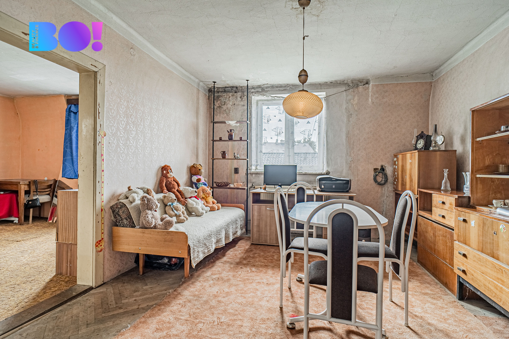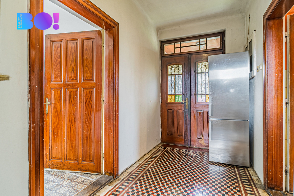 V přízemí domu jsou dva prostorné neprůchozí pokoje, vetší kuchyně a koupelna s wc. V patře pak tři pokoje a prostor pro vybudování menší kuchyně nebo koupelny. Podlahová plocha je 141m². Na domě proběhly menší úpravy - má nová plastová okna, je započata rekonstrukce koupelny. Zároveň má stavba původní prvky, jako je například historická dlažba v chodbách, původní vstupní dveře. Dům je cihlový, betonové podlahy v přízemí i patře. Je podsklepený. Napojený na veřejný vodovod, ale i na studnu. Přípojka plynu je na hranici pozemku. Topení kotlem na tuhá paliva a krbovými kamny.