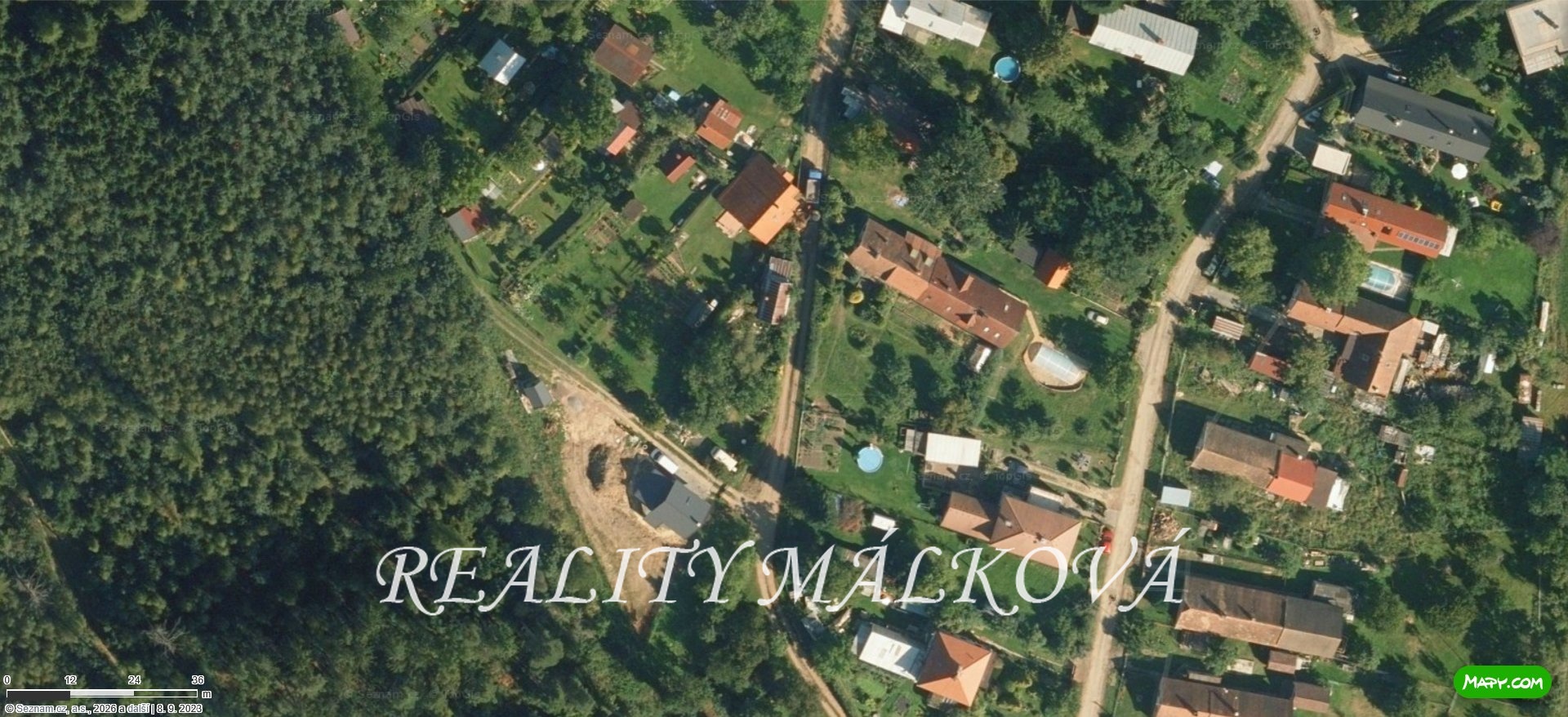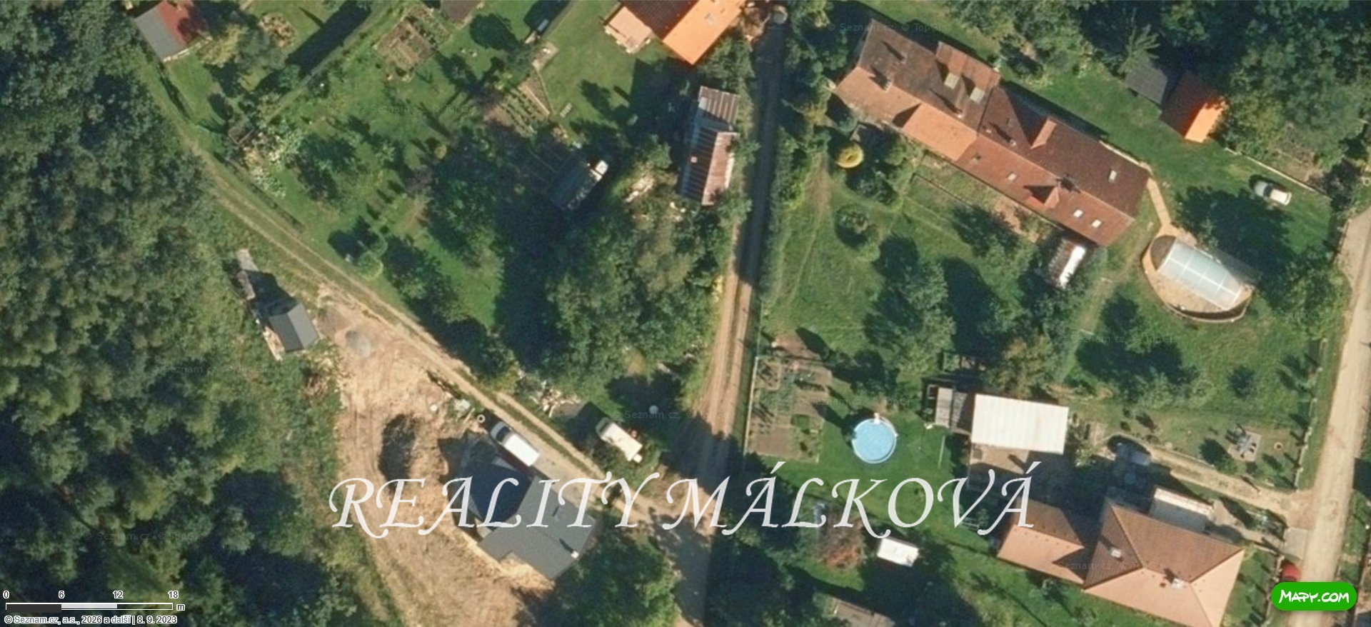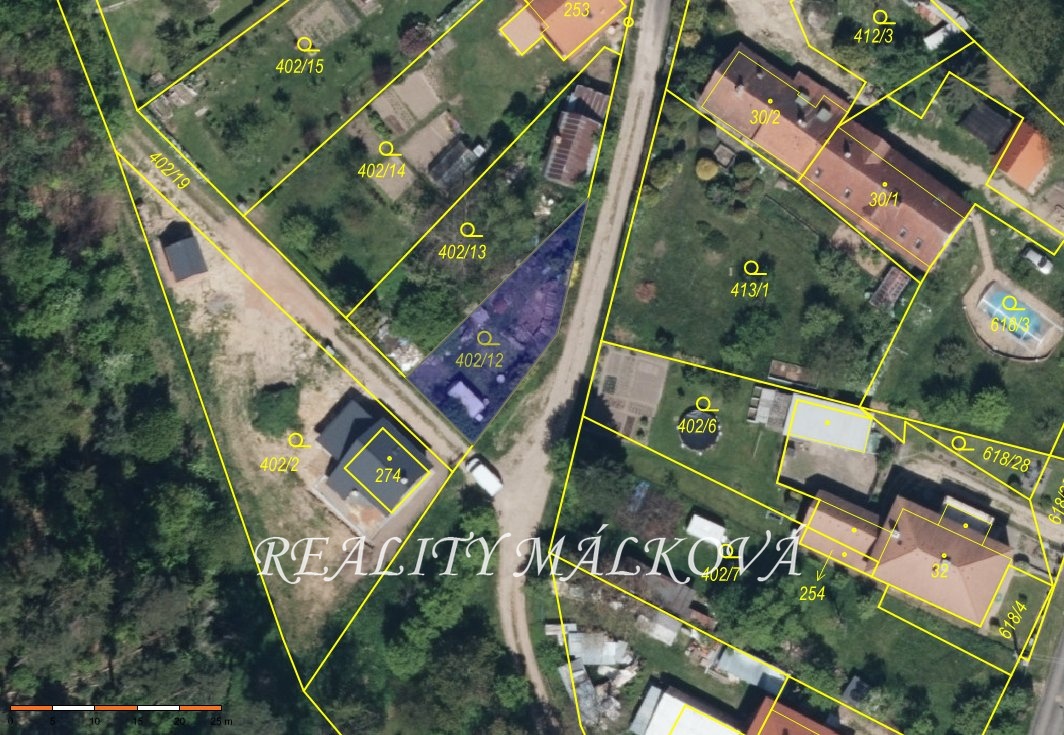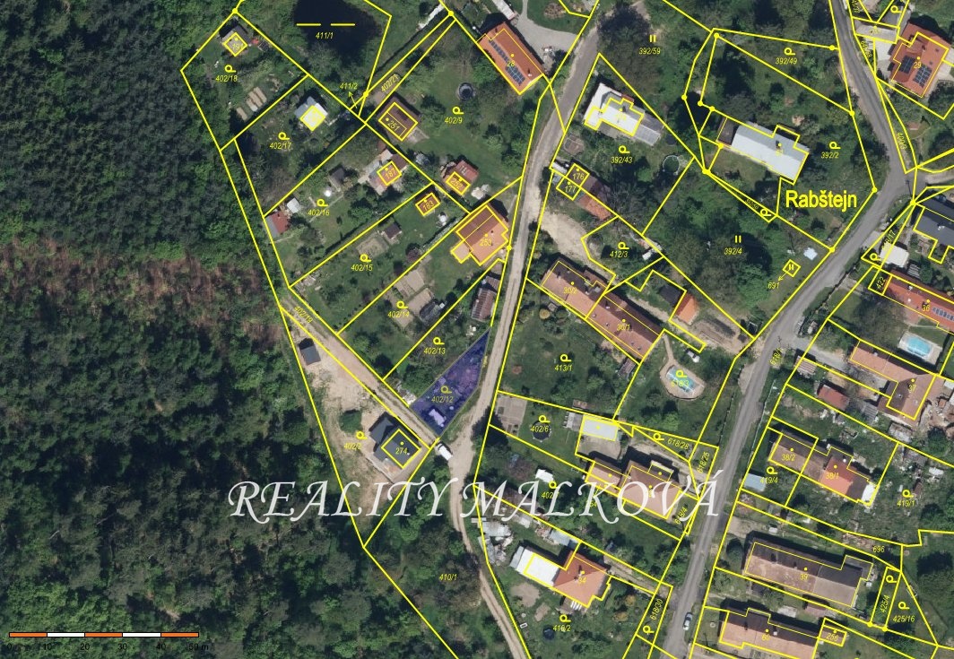 Součástí prodeje je i spoluvlastnický podíl (1/8) na příjezdové cestě (parc. č. 402/19). Máte tak vyřešený příjezd autem i čisté podklady pro stavební úřad či případné financování bankou.