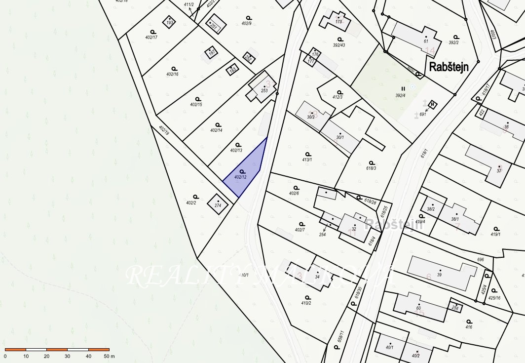 Pozemek se nachází v docházkové vzdálenosti od zříceniny hradu Rabštejn.