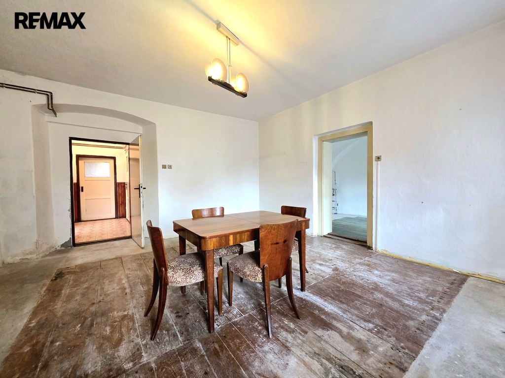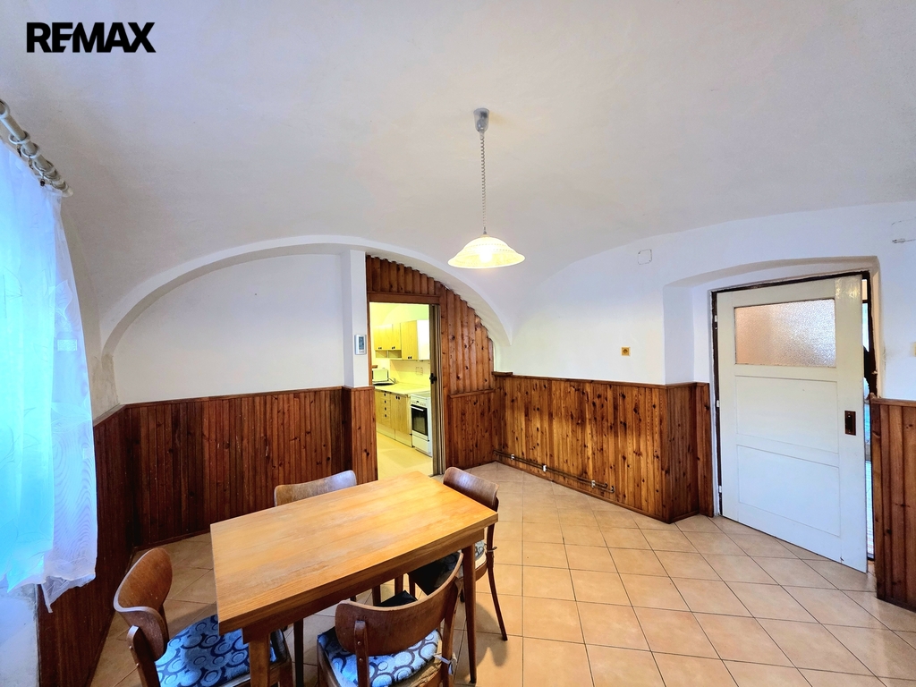 • Vnitřní dispozice: Dům má v přízemí praktickou dispozici 3+1. Ze vstupní předsíně se vchází do prostorného obývacího pokoje, na který navazuje samostatná ložnice. Z předsíně je dále přístupná velká jídelna, na kterou navazuje kuchyně se spíží. Sociální zázemí tvoří koupelna společná s toaletou. Z předsíně vedou také schodiště na půdu a do sklepa. Pro lepší orientaci se podívejte na 2D/3D půdorysy ve fotogalerii. V přízemí najdete krásné klenbové stropy. Při citlivé renovaci dodají vašemu novému bydlení neopakovatelný historický charakter a originální atmosféru, kterou v běžném domě zkrátka nenajdete.
