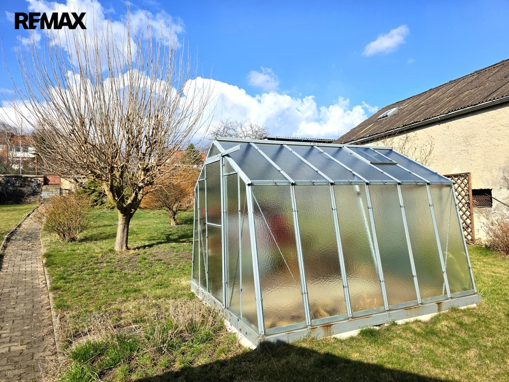 • Zahrada a pozemek (celková plocha přes 1 000 m²): Hlavní vstup a vjezd do nemovitosti vede z ulice přímo na dlážděný dvůr, který poskytuje dostatek prostoru na parkování, odtud je pohodlně přístupná i vedlejší stavba. K domu dále náleží udržovaná zahrada o výměře 618 m² s výsadbou okrasných i ovocných stromů a funkčním skleníkem. Výhodou je i druhý samostatný vstup na pozemek ze zadní části zahrady přímo z obecní cesty.