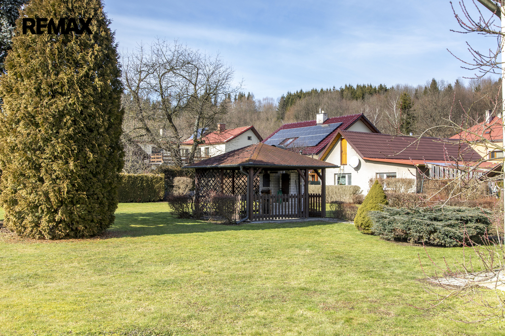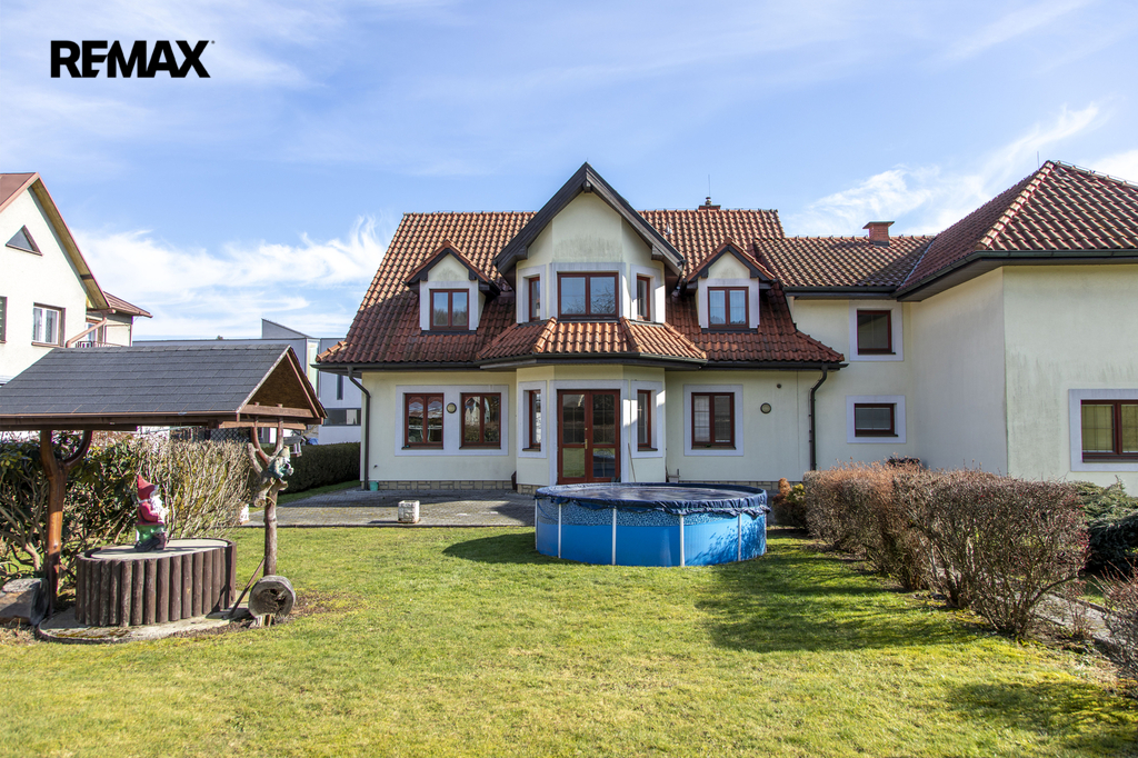 Dům obklopuje rovinatý pozemek o výměře 1.973m² a jeho součástí je terasa se zámkovou dlažbou, altán s posezením a zahradním krbem, bazén a již zmíněná studna.