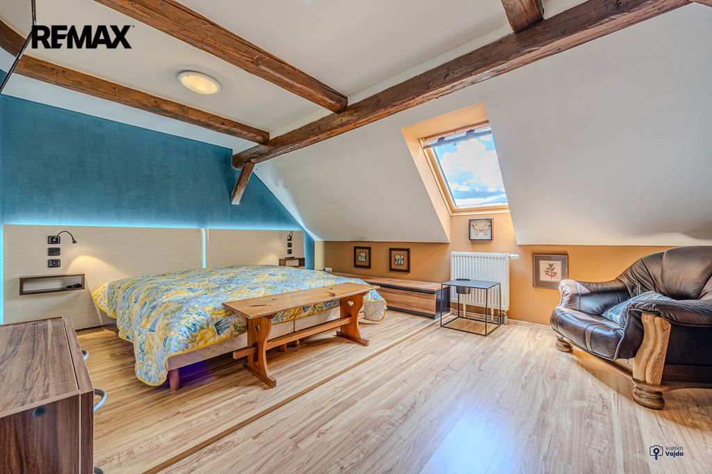 Součástí nemovitosti je také garáž a stodola, která může sloužit jako dílna, skladovací prostor nebo být přestavěna na ubytování pro hosty či menší penzion. A perla na závěr – v zadní části zahrady se nachází malebné jezírko, které tvoří naprosto jedinečnou atmosféru. Můžete u něj odpočívat, meditovat nebo trávit letní večery s rodinou a přáteli při západu slunce.