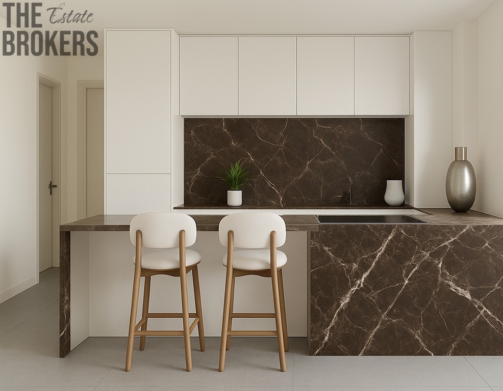 Moderní apartmány disponují 2 ložnicemi a 2 koupelnami, terasou a komunitním bazénem.