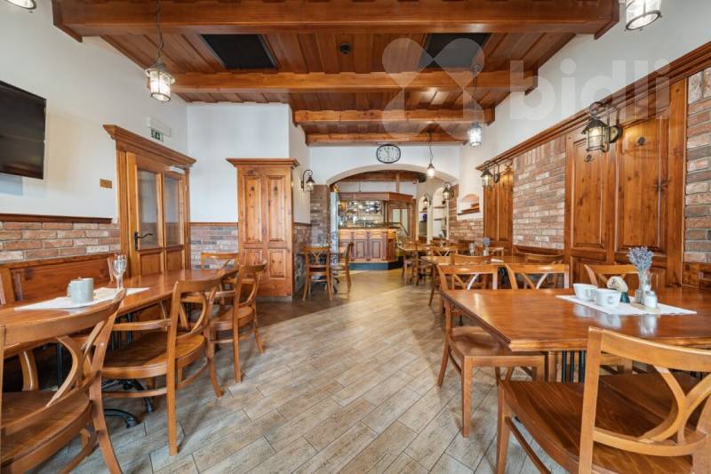 V prvním nadzemním podlaží se nachází vyhlášená restaurace rozdělené do tří částí (s kapacitou až 88 osob), dále dvě bowlingové dráhy se zázemím a soukromý salonek s kulečníkem. Dále je zde moderně zařízená plně profesionálně vybavená kuchyň a ještě menší restaurační provoz pro cca 25 osob vhodný na menší soukromé akce. Samozřejmostí je krásná zahrádka v podloubí hotelu s kapacitou až 35 hostů.