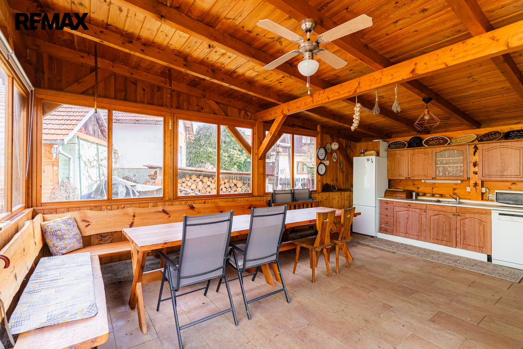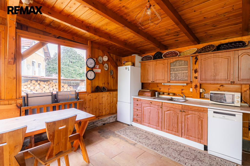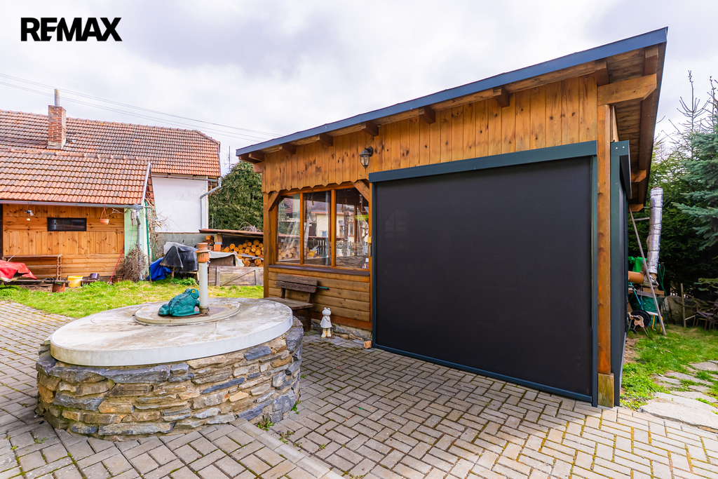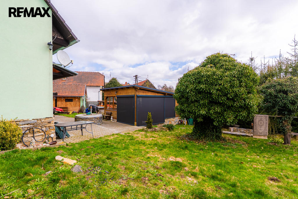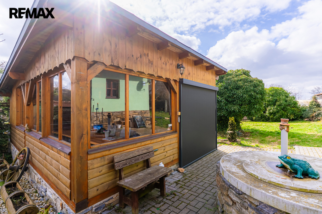 Letní kuchyň, vybudovaná v roce 2020, má na zemi položenou dlažbou a přípojky vody, odpadu i elektřiny, což z ní činí ideální prostor pro posezení i letní vaření. Zahradní domeček má vlastní WC a nabízí možnost využití pro hosty nebo jako sezónní bydlení.