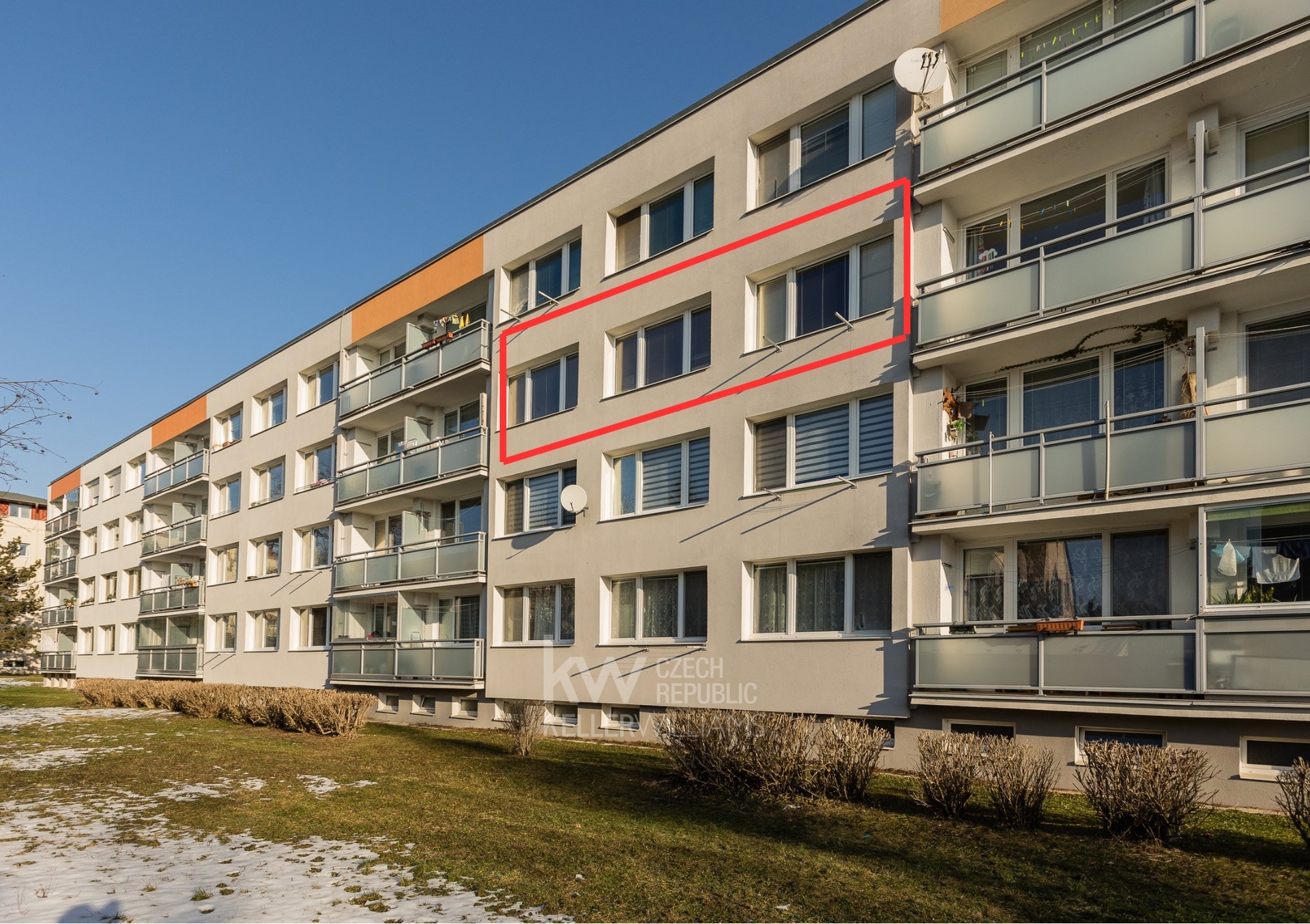 Všechna okna bytu jsou s JZ orientací