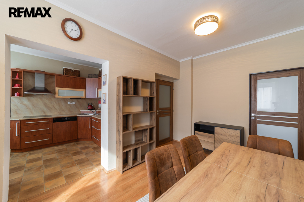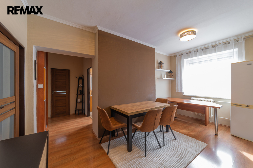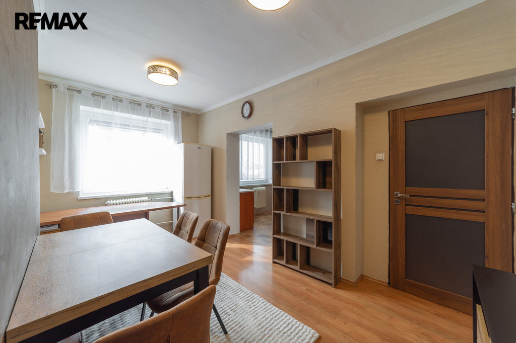 Dispozičně je byt velmi prakticky řešen – nabízí tři samostatné, neprůchozí pokoje, prostornou kuchyni se spíží a navazující jídelnou, předsíň, koupelnu a samostatné WC. Díky tomu poskytuje dostatek prostoru i soukromí pro rodinné bydlení.