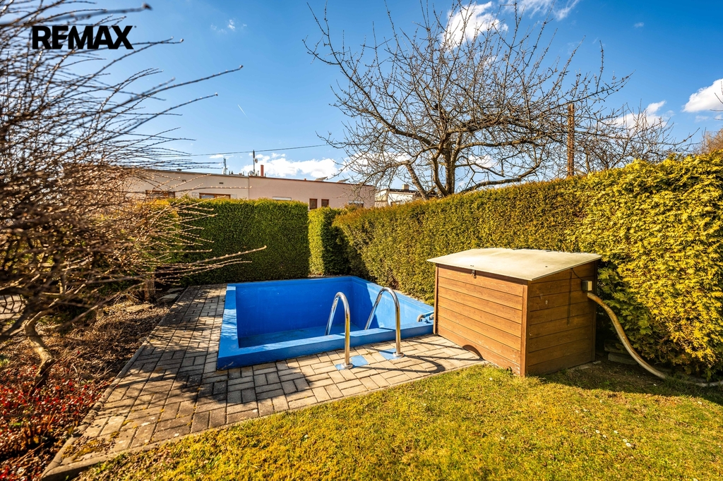 Členitá, oplocená zahrada je z části osázená množstvím okrasných dřevin, díky nimž je na celém pozemku příjemné soukromí, z části sloužila jako užitková s připravenými záhony. Součástí je vybetonovaný bazén s funkční technologií a dále zahradní domek s krbem a udírnou.