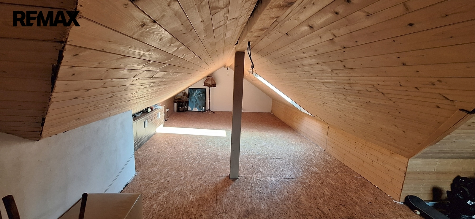 Součástí domu je také půdní prostor přístupný poklopem se sklopnými schody. Půda je zateplená, obložená palubkami a nabízí jednu prostornou místnost, kterou lze využít například jako pracovnu, hernu, ateliér nebo další obytný prostor dle potřeb nového majitele.