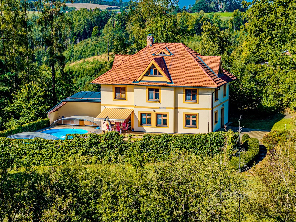 Prodej luxusního rodinného domu 7+1 s krytým bazénem, dvojgaráží a pozemkem 5 036 m² – Sázava, Čeřen