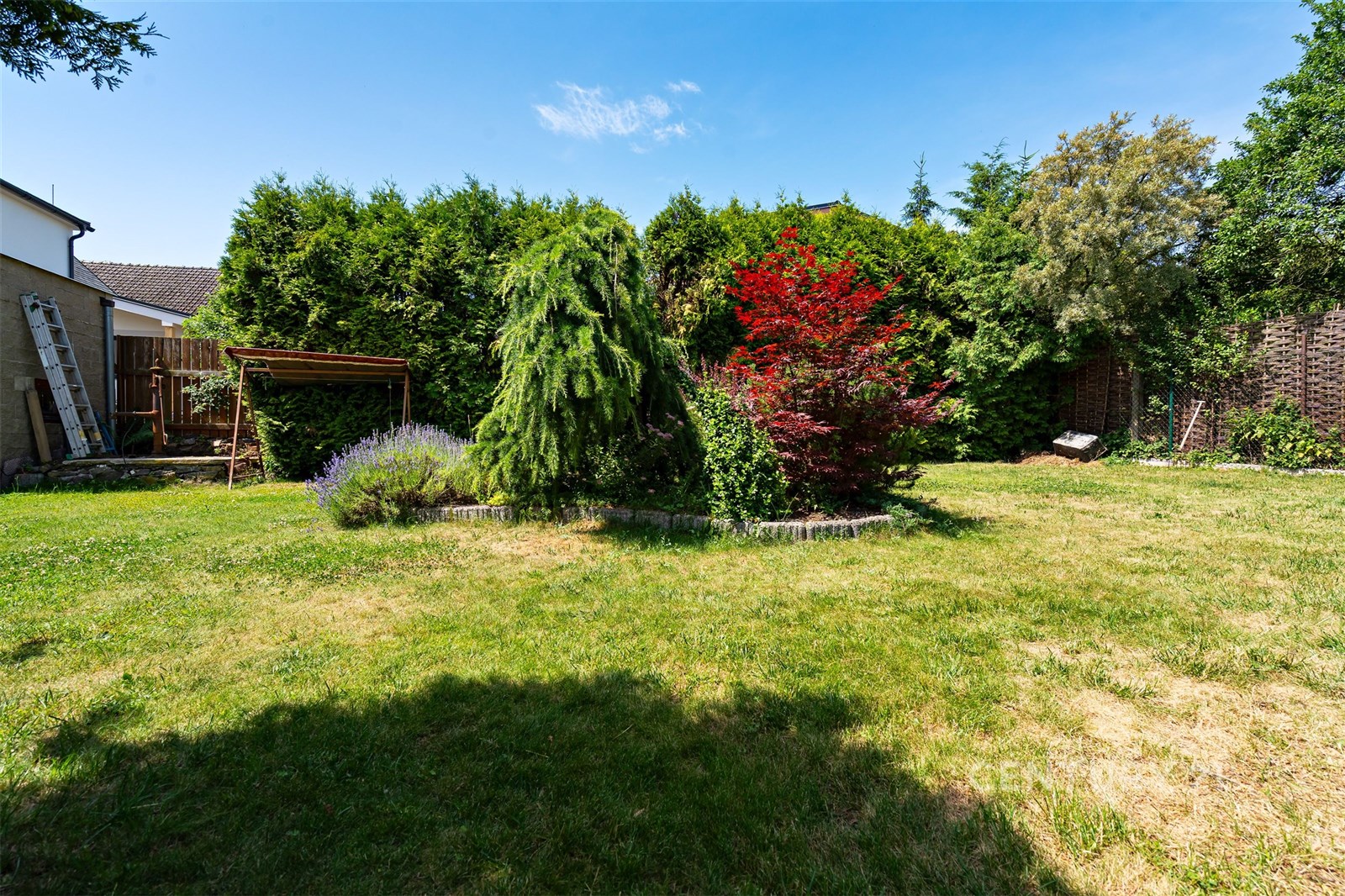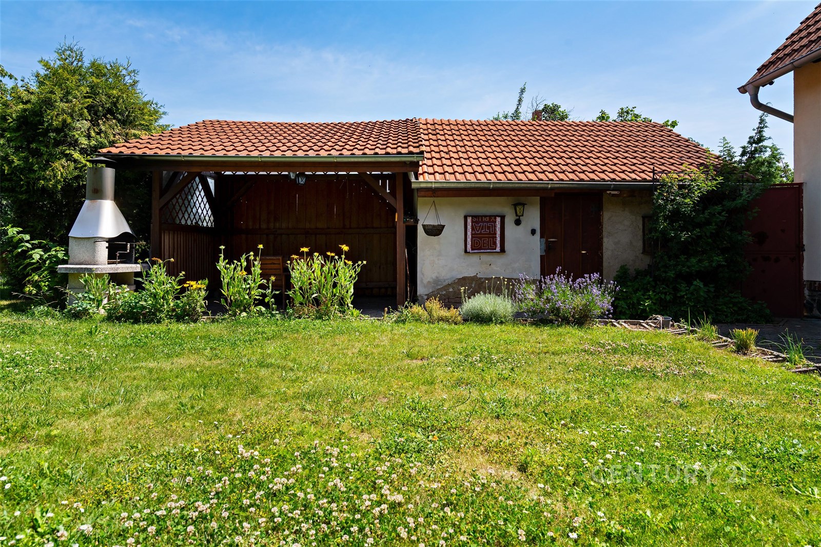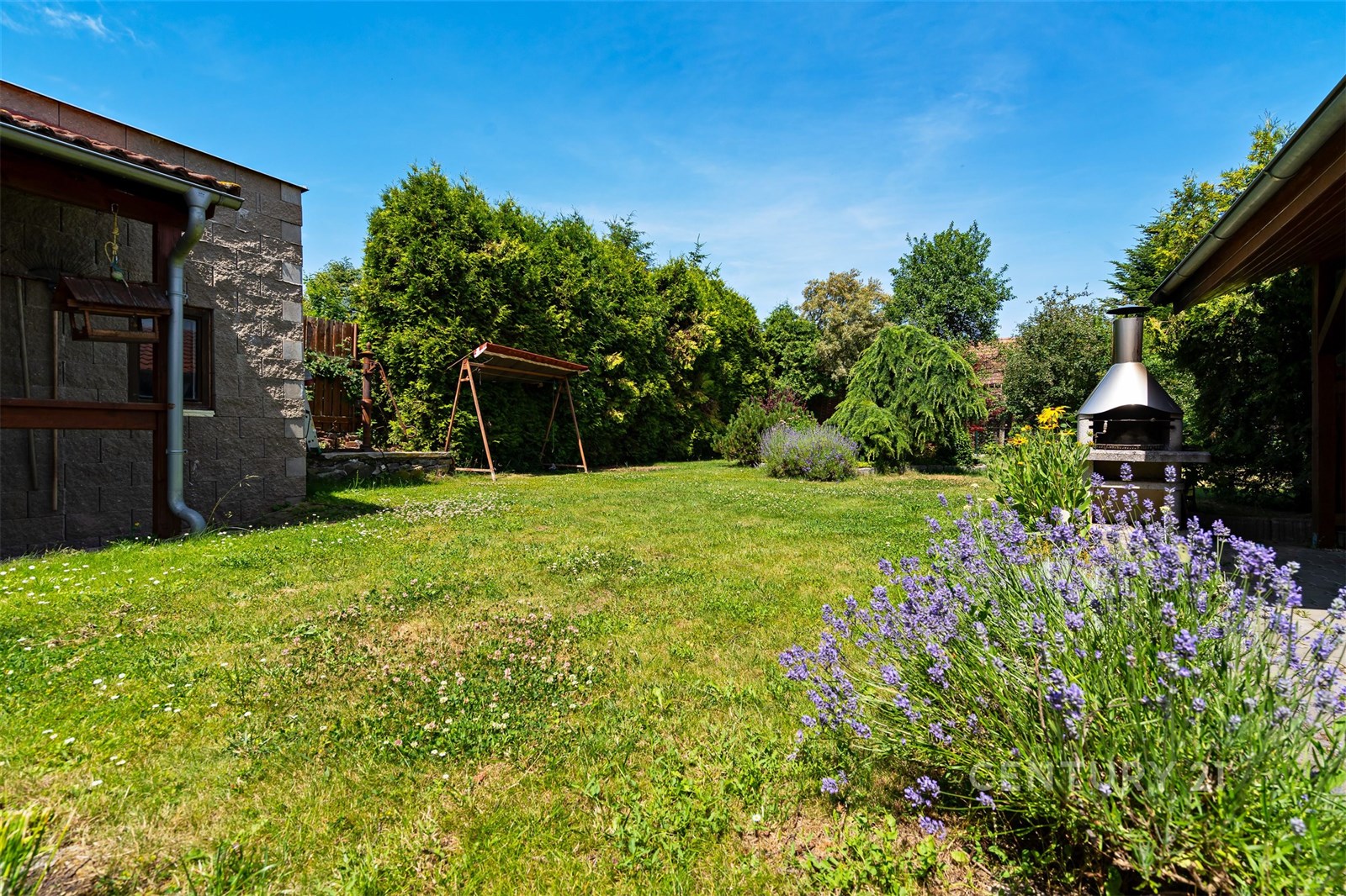 Zahrada je ideální pro odpočinek i setkávání s přáteli – najdete tu krytou pergolu s krbem, zděný zahradní domek, který může sloužit jako dílna, zimní posezení nebo sklad. Prostorná garáž umožňuje parkování i vyššího vozu nebo dodávky a navazující vytápěný prostor se hodí jako dílna nebo pro uskladnění sportovního vybavení.