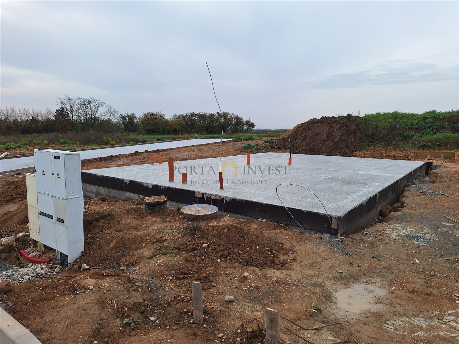 Jedná se o krásný rovinatý pozemek situovaný na úžasném místě na kopci při severním okraji obce nedaleko lesa. Celková výměra pozemků činí 10.466 m2, přičemž dle projektu a katastru je tento rozdělen na 12 stavebních parcel s čistou prodejní plochou 8.782 m2, zbytek připadá na komunikaci. Parcely mají výměru 436 m2 – 1.189 m2. K projektu jsou veškerá povolení jak na sítě, tak na domy. Aktuálně jsou již dokončeny práce na budování sítí a komunikace a je dokončena jedna základová deska.