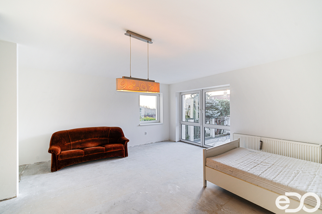 Obytná galerie v patře s velkoformátovým oknem umožňují, v případě potřeby, přepažení pro vznik dalšího samostatného pokoje.