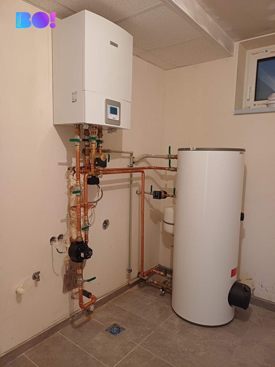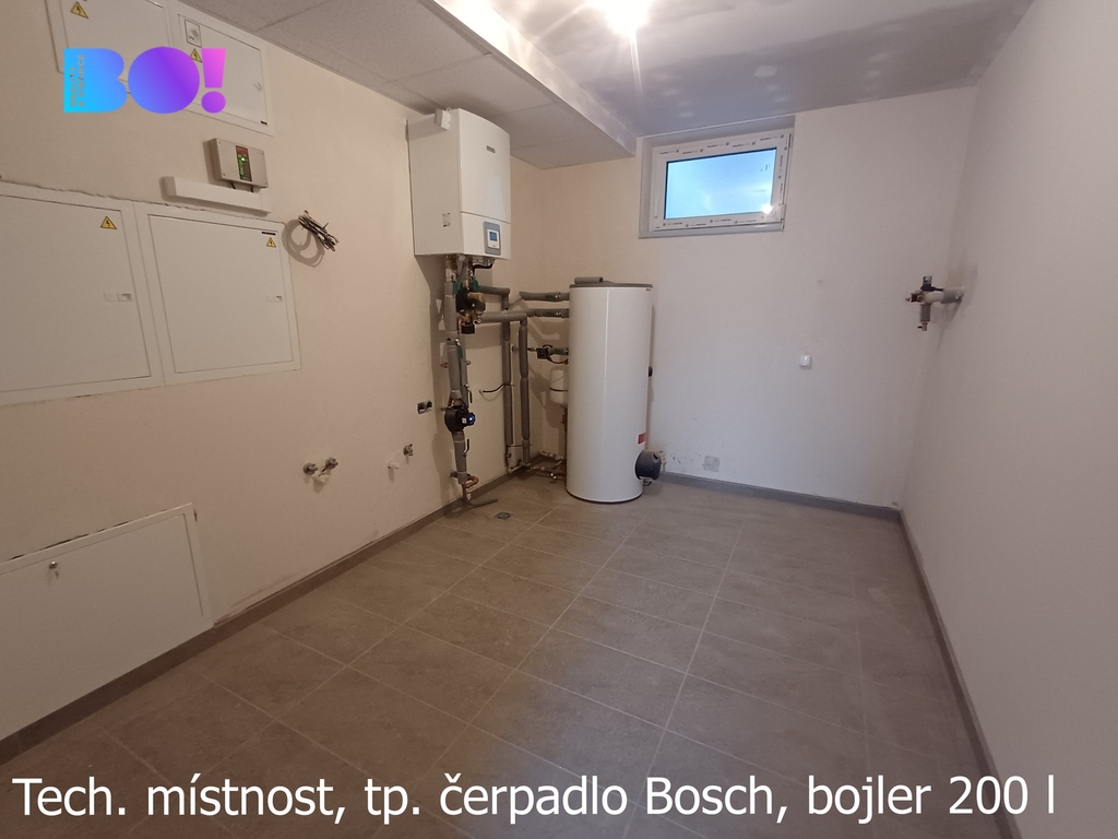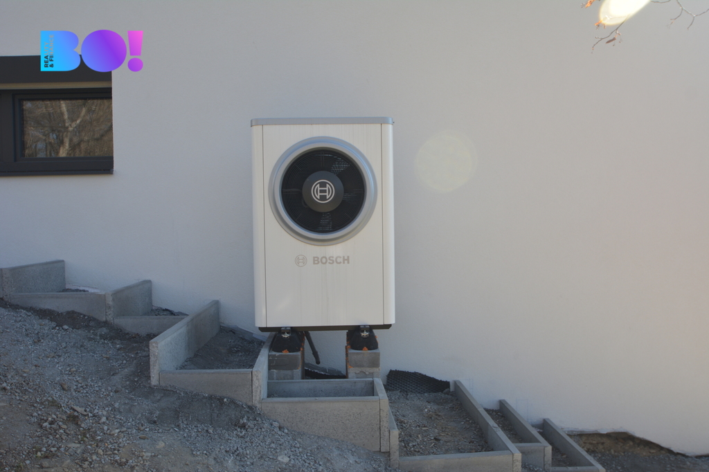 O vytápění se stará značkové tepelné čerpadlo BOSCH, doplněné o fotovoltaický systém o výkonu 3 kW určený pro výrobu teplé vody se zásobníkem o objemu 250L.