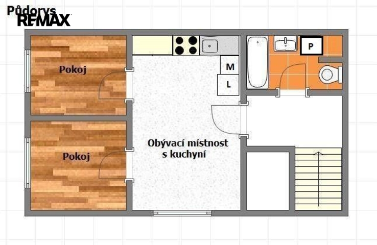 Dispozice bytu: Byt je situován v 2NP se samostatným vchodem a alarmem.