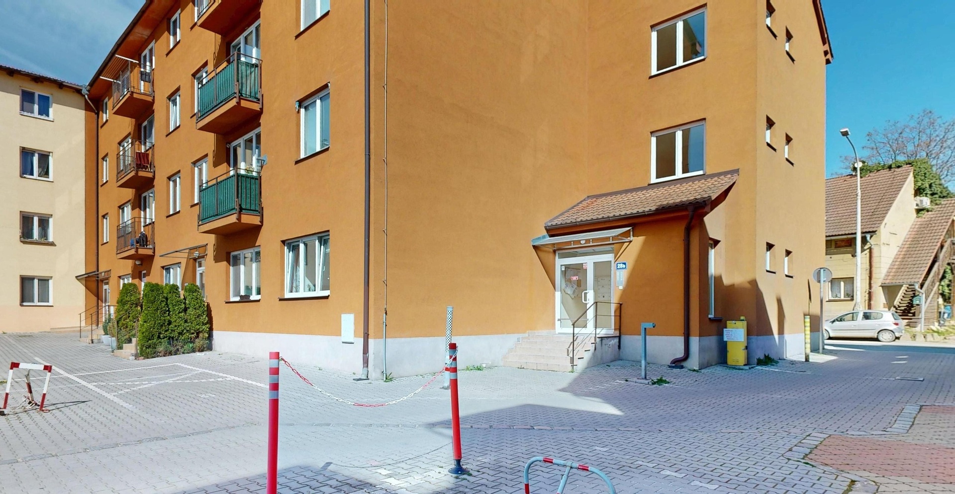 Byt má okna do vnitrobloku, což zajišťuje klid a soukromí. Předsíň a koupelna s WC, vanou a prostorem pro pračku mají keramickou dlažbu, obytný prostor s kuchyňským koutem plovoucí lamino podlahu. Dispozice je praktická, vhodná jak pro vlastní bydlení pro pár, tak jako investice k pronájmu.