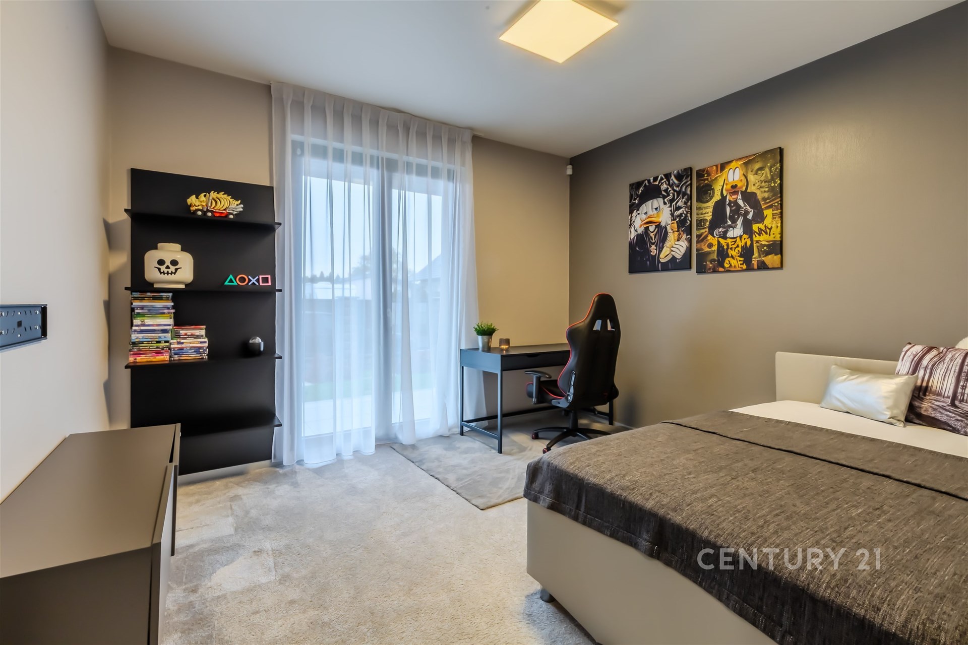 Dále budete mít k dispozici ložnici, dva dětské pokoje, ložnici, šatnu a koupelnu s toaletou. V domě se nachází také prádelna a světlá předsíň. Z předsíně můžete vstoupit do garáže pro jeden osobní automobilu. Druhý osobní automobil můžete zaparkovat jak na vlastním pozemku, tak i před domem.
