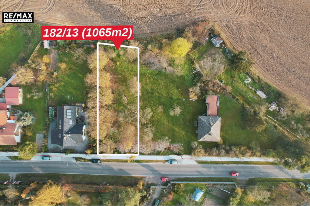 Rozměry jsou cca 20 x 53 m. Pozemek kratší hranicí přiléhá k veřejné komunikaci se sítěmi, je zde vedení vodovodu, kanalizace a elektřiny, plyn není k dispozici.