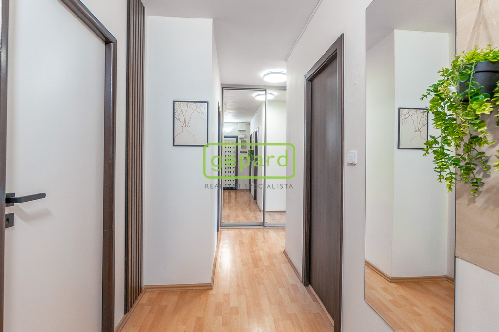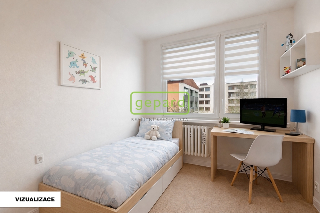 Podlahová plocha bytu činí 60,6 m² a nabízí praktické dispoziční řešení. Obývací pokoj plynule navazuje na kuchyň, dále je k dispozici ložnice a samostatný pokoj, který může sloužit jako dětský pokoj, pracovna nebo pokoj pro hosty. Součástí bytu je koupelna a oddělené WC.
