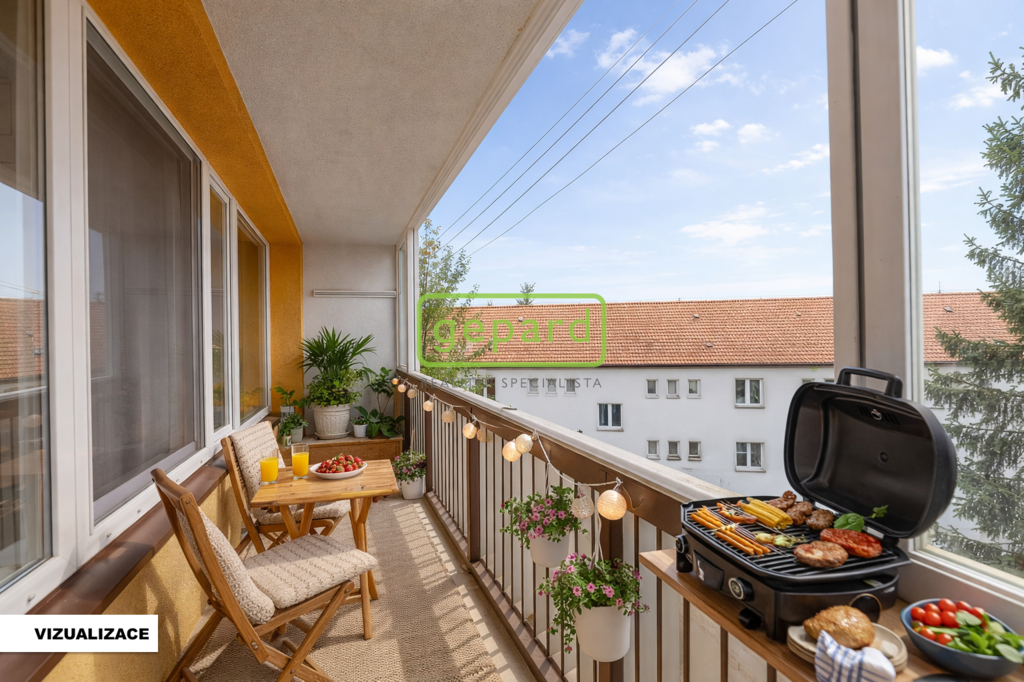Na byt navazuje zasklená lodžie o velikosti 7 m², která příjemně rozšiřuje obytný prostor a nabízí ideální místo pro ranní kávu nebo odpočinek.