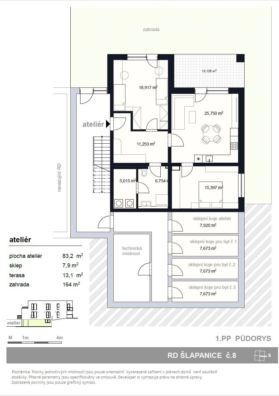 V tomto projektu nabízíme k prodeji ateliér 3+KK s terasou a zahradou.