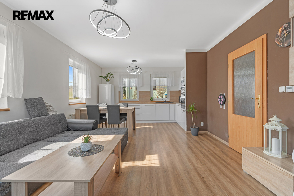 Dům je situován na pozemku o celkové výměře 906 m² a nabízí praktickou dispozici 3+kk. Dominantou je světlý obývací pokoj propojený s kuchyní, který tvoří dominantu celého domu. K dispozici jsou dále dva samostatné pokoje, koupelna s vanou, toaleta a šatna. Velkou přidanou hodnotou je půdní prostor s potenciálem pro rozšíření obytné části dle Vašich představ.