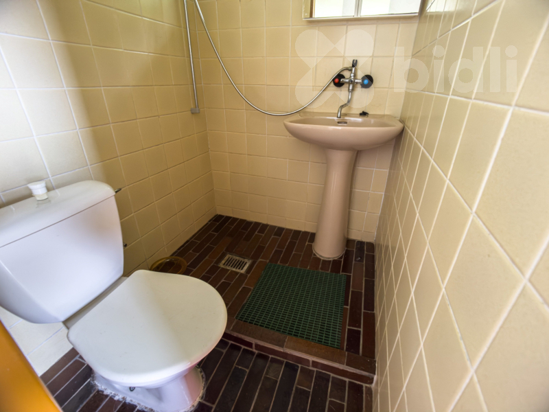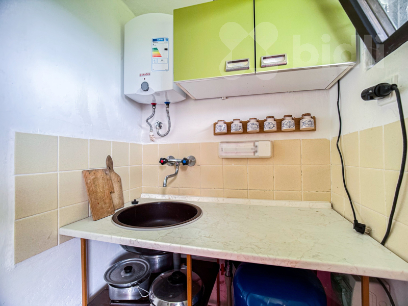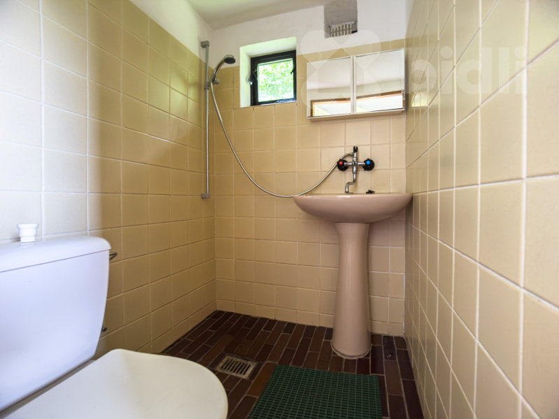 1.NP: Kuchyně se zázemím, koupelna s umyvadlem, sprchovým koutem a toaletou