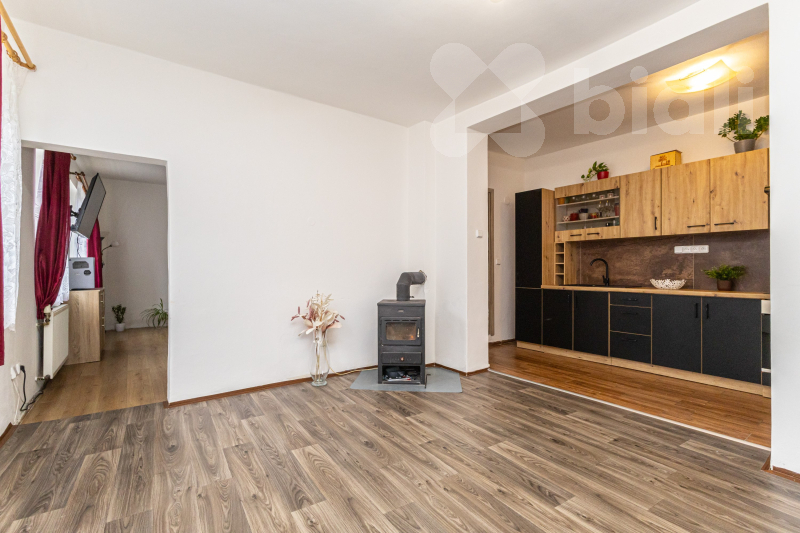 Dům má celkovou užitnou plochu přibližně 102 m2 a prošel kompletní rekonstrukcí. V přízemí se nachází útulný obytný pokoj s kamny, kuchyně, koupelna, samostatné WC s úklidovou místností, obývací pokoj a vstupní chodba. V nově vybudovaném podkroví je prostorný dětský pokoj, příjemná ložnice a chodba. Součástí domu je také sklep o velikosti 13,2 m2 a menší dvůr. Zahrada zde není, což ocení každý, kdo preferuje bydlení bez nároků na údržbu většího pozemku.