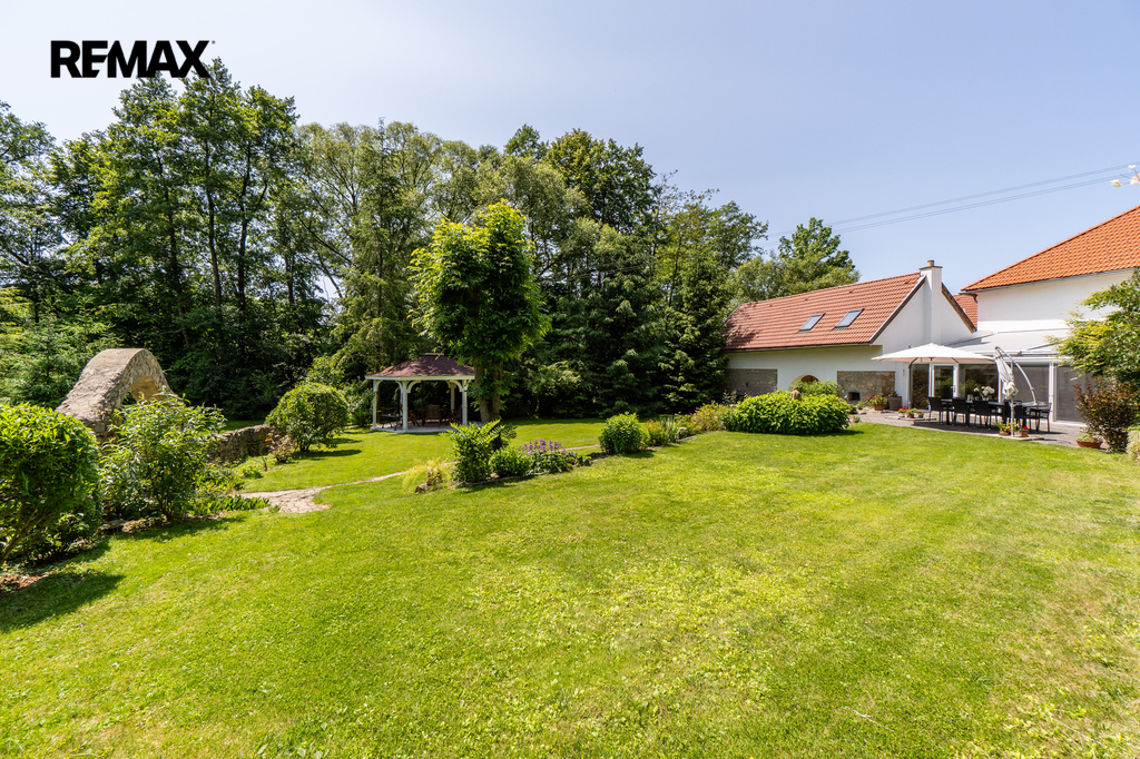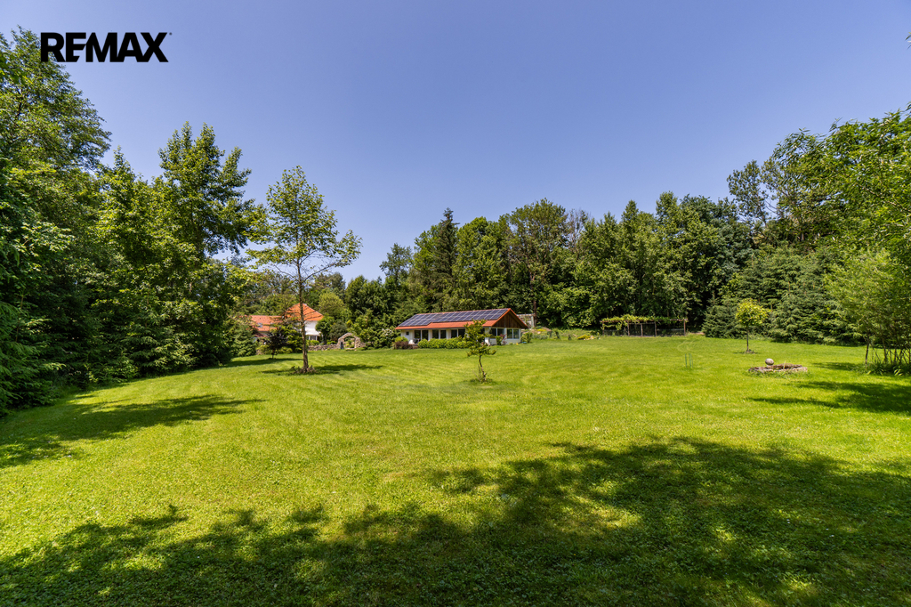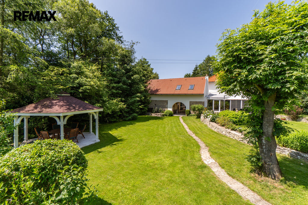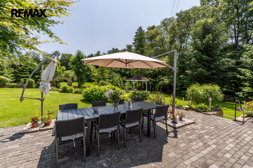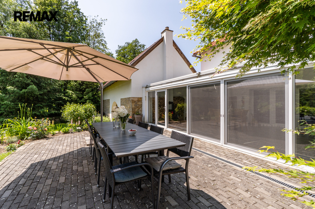 Dům je napojen na moderní fotovoltaický systém s bateriemi a vytápěn tepelným čerpadlem vzduch–voda, což z něj činí energeticky soběstačný a ekologický objekt. Zimní zahrada se stínicí technikou reagující na počasí poskytuje klidné útočiště během celého roku. Venku vás okouzlí bazén se sladkou vodou a tepelným čerpadlem, sprchou a toaletou, vše navržené s důrazem na pohodlí. Zahrada je nejen pečlivě upravená, ale i jedinečně koncipovaná – její chloubou je majestátní kalifornská sekvoj, vzrostlý unikátní strom zasazený před 15 lety, který vytváří impozantní dominantu rozlehlé zahrady. Nechybí ani klidová zóna s dřevěným domečkem na stromě (tree house) a meditačním „templem“ vytvořeným unikátním materiálem - z desek starých klavírů.