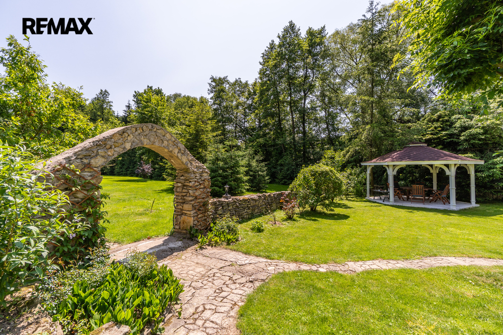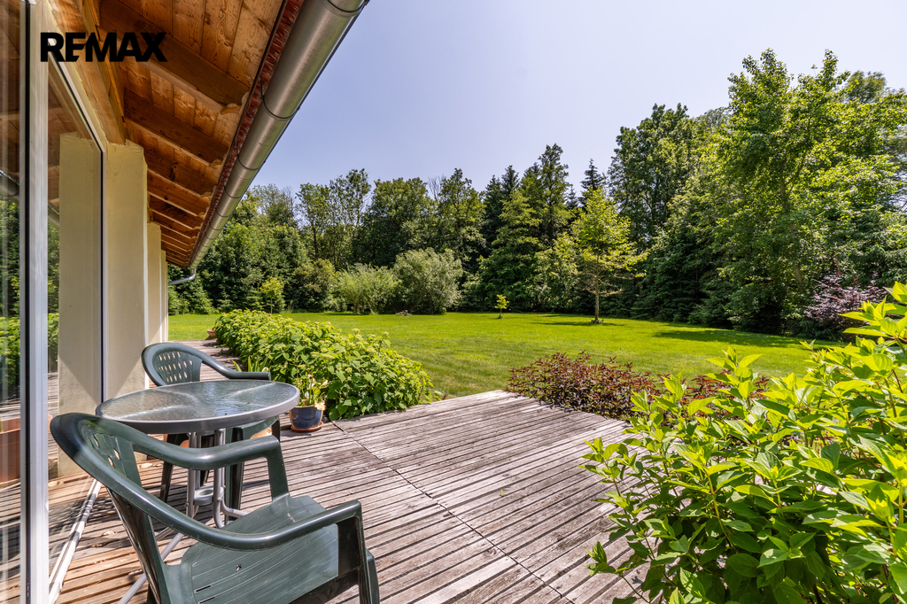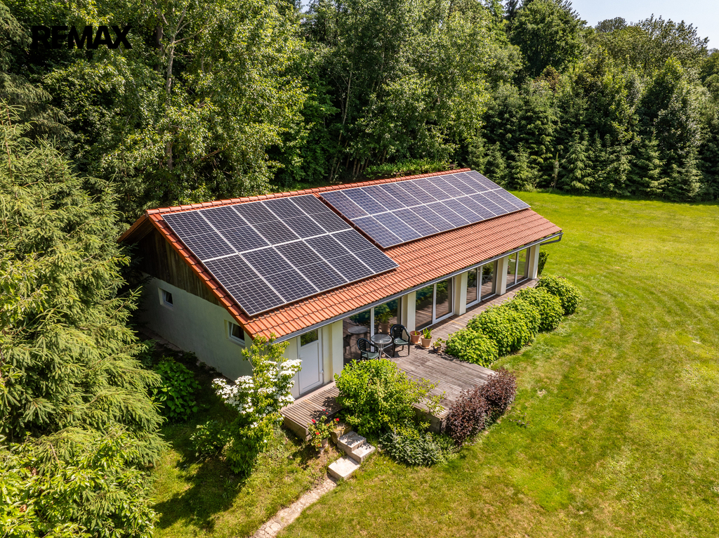 Dům je napojen na moderní fotovoltaický systém s bateriemi a vytápěn tepelným čerpadlem vzduch–voda, což z něj činí energeticky soběstačný a ekologický objekt. Zimní zahrada se stínicí technikou reagující na počasí poskytuje klidné útočiště během celého roku. Venku vás okouzlí bazén se sladkou vodou a tepelným čerpadlem, sprchou a toaletou, vše navržené s důrazem na pohodlí. Zahrada je nejen pečlivě upravená, ale i jedinečně koncipovaná – její chloubou je majestátní kalifornská sekvoj, vzrostlý unikátní strom zasazený před 15 lety, který vytváří impozantní dominantu rozlehlé zahrady. Nechybí ani klidová zóna s dřevěným domečkem na stromě (tree house) a meditačním „templem“ vytvořeným unikátním materiálem - z desek starých klavírů.