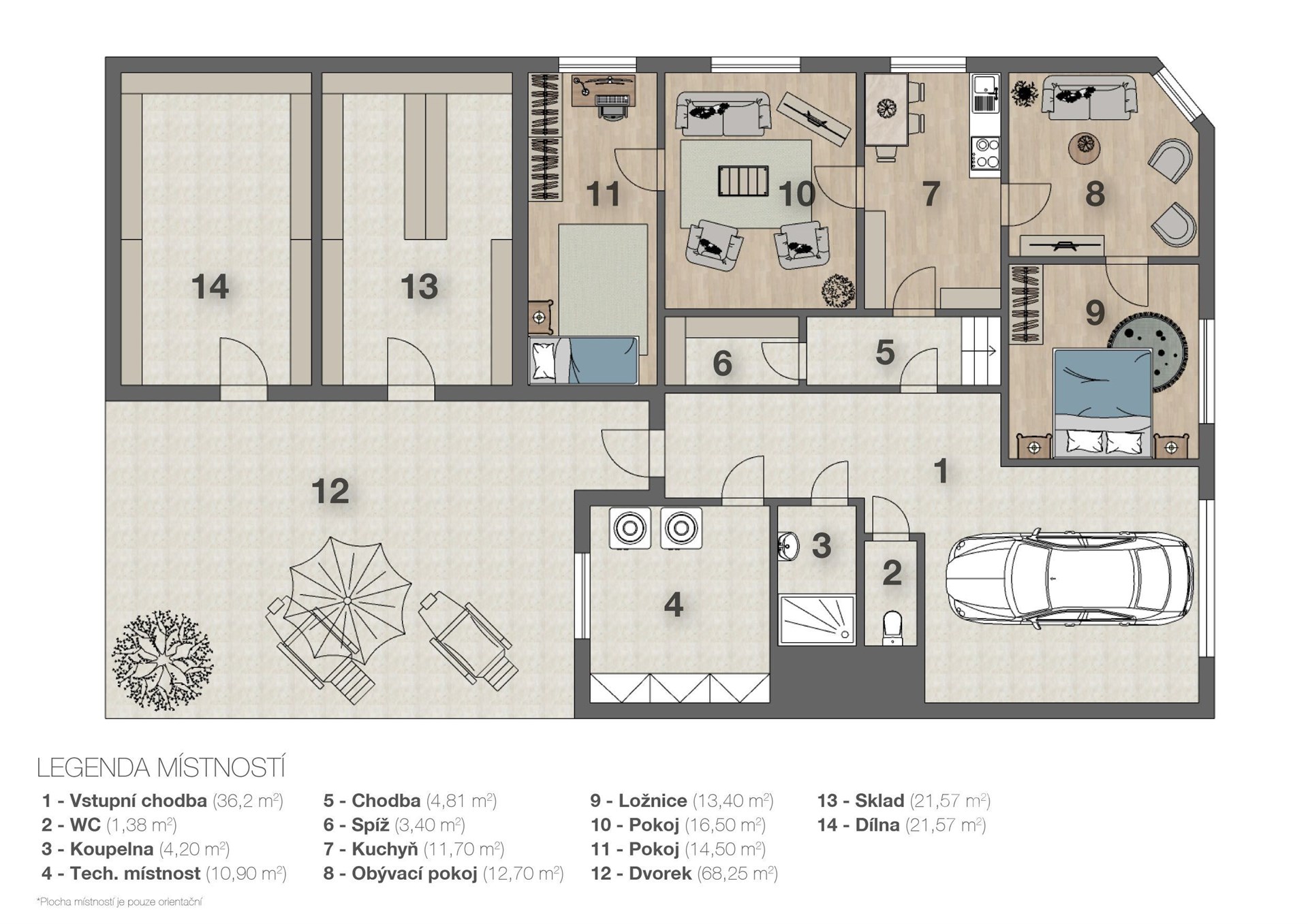 - Zastavěná plocha: 216 m²