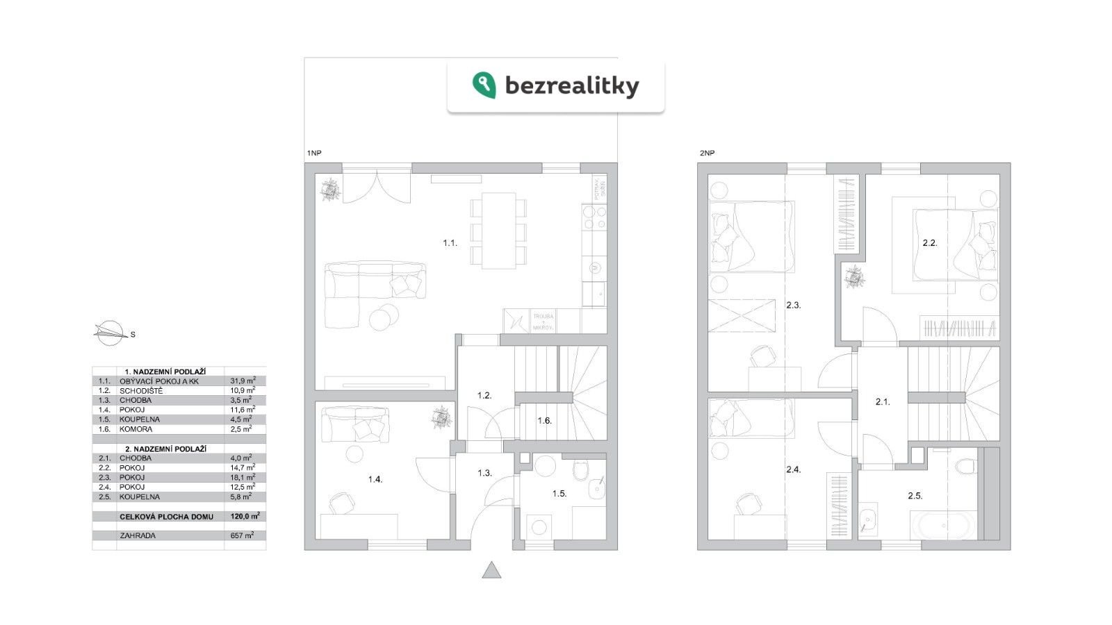 Dům je dispozičně velmi dobře řešený s kuchyní a obývacím pokojem ze kterého je přímý vstup na venkovní terasu. Dále se čtyřmi prostornými ložnicemi, nádhernými dvěma koupelnami, kde v 1.NP se nachází první koupelna s wc, sprchovým koutem, umyvadlem, přípravou na pračku a v 2.NP druhá koupelna s wc, vanou, umyvadlem s prostornou skříňkou. Obě koupelny jsou také vybaveny elektrickým podlahovým vytápěním.