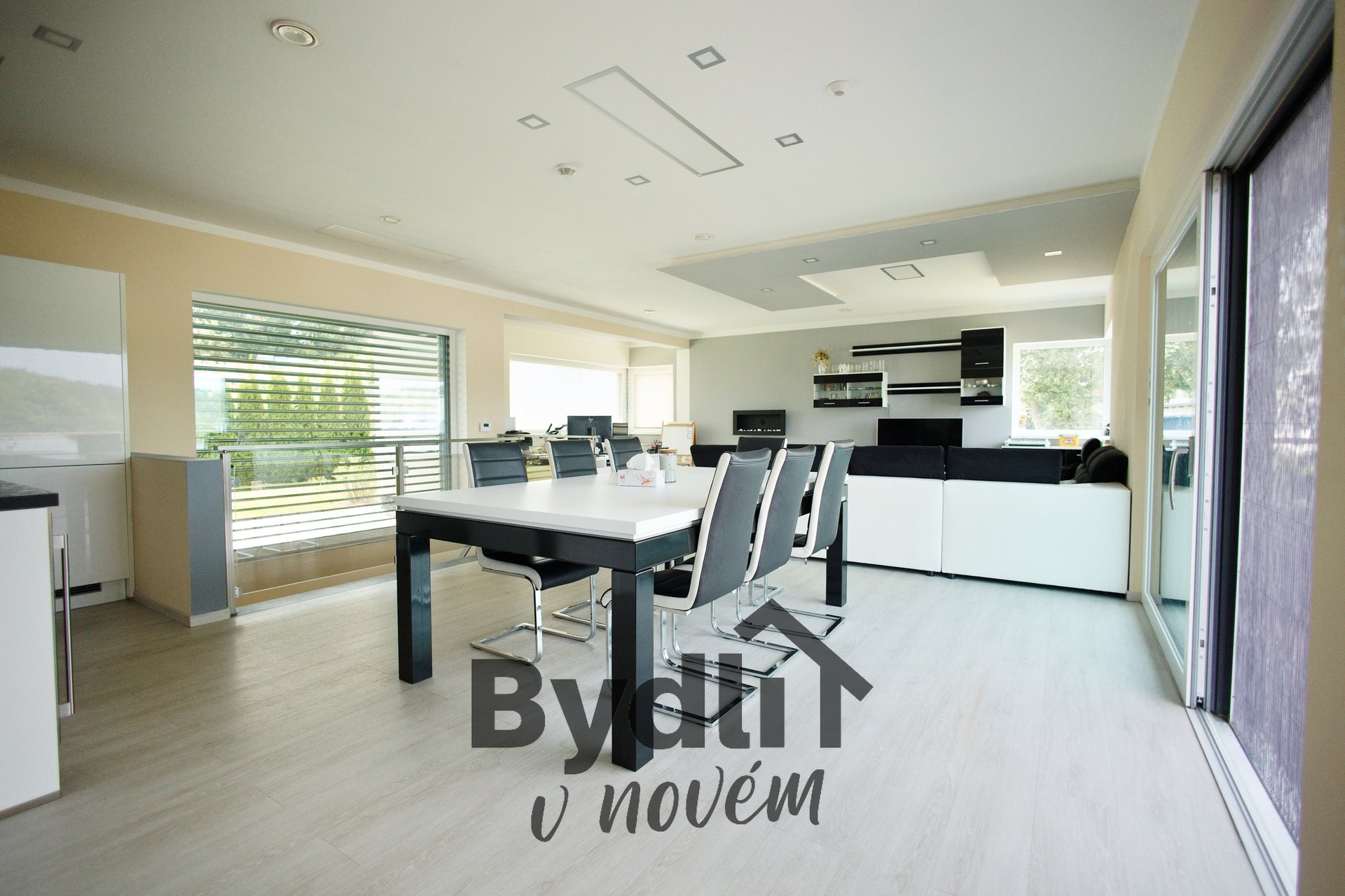 Nabízíme vám k prodeji unikátní nízkoenergetickou rezidenci 5+2kk na velkorysém pozemku 1 913 m², která definuje moderní standard bydlení.