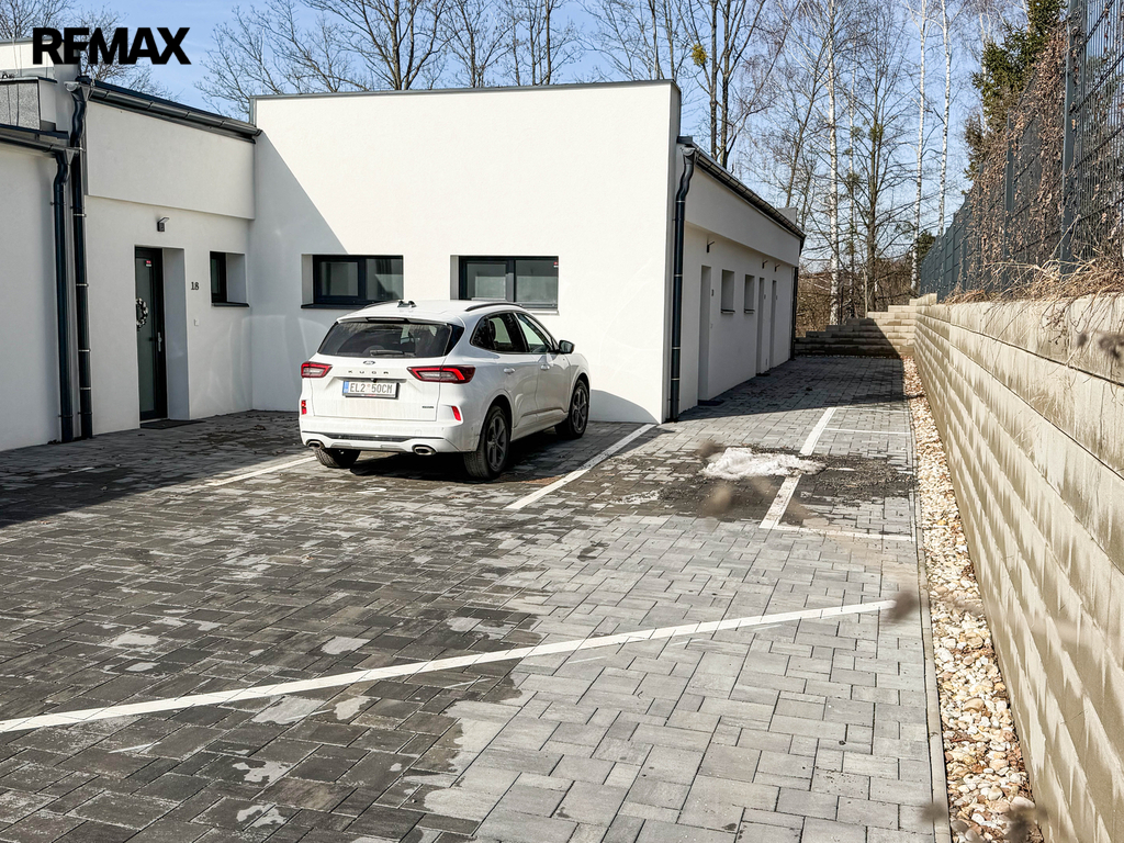 Parkování: Dvě vyhrazená parkovací stání přímo v areálu