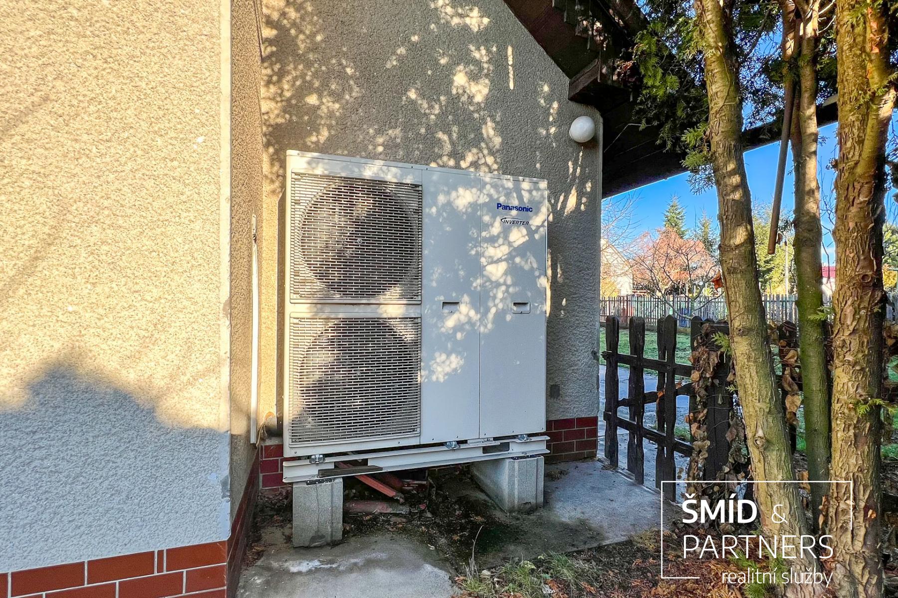 Vytápění je moderně řešeno tepelným čerpadlem značky Panasonic, které je každý rok servisované.