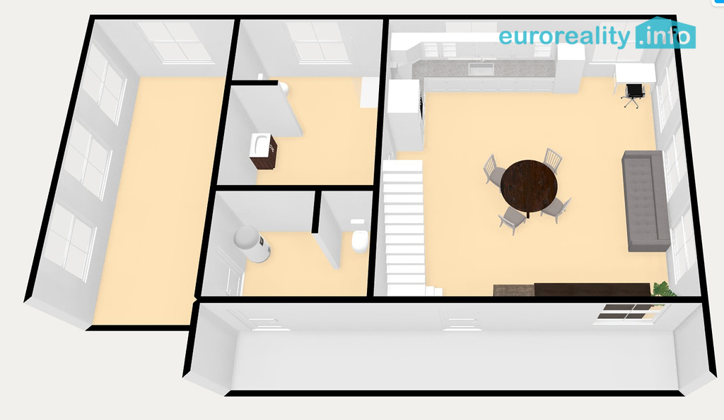 Interiér domu byl nedávno modernizován, přičemž byla instalována nová kuchyně a nový nábytek na míru, který vytváří útulné a stylové prostředí. Celý dům je zateplen, což přispívá k energetické efektivitě a příjemné teplotě v interiéru po celý rok. Na podlahách je dlažba, parkety a plovoucí podlaha.