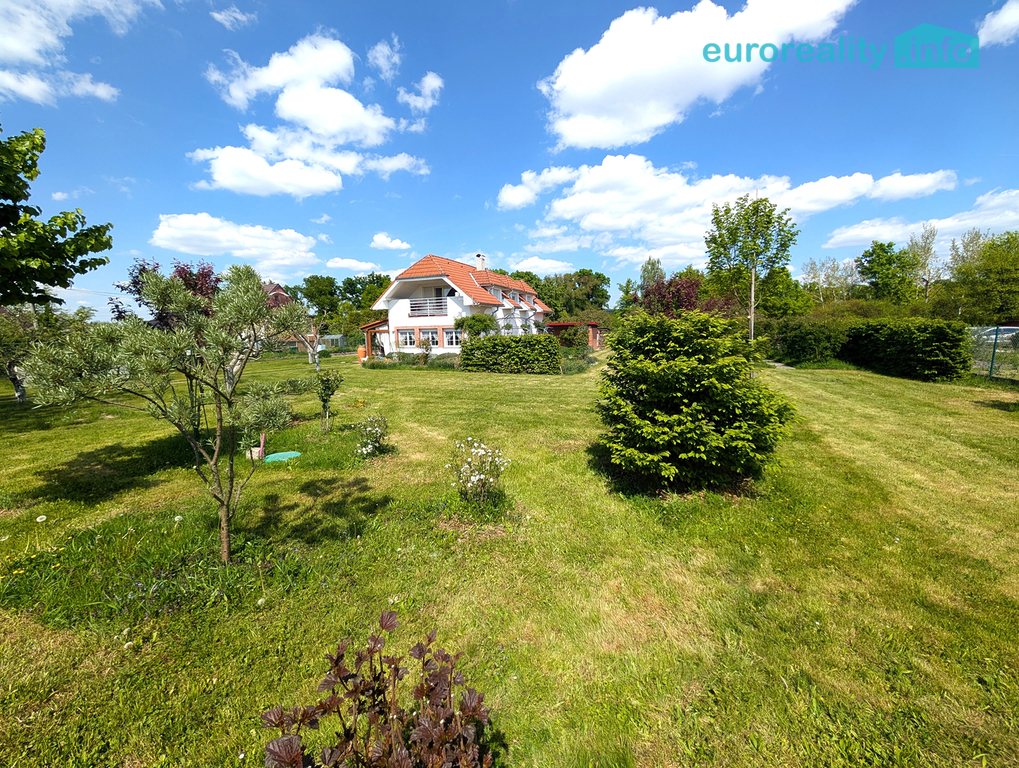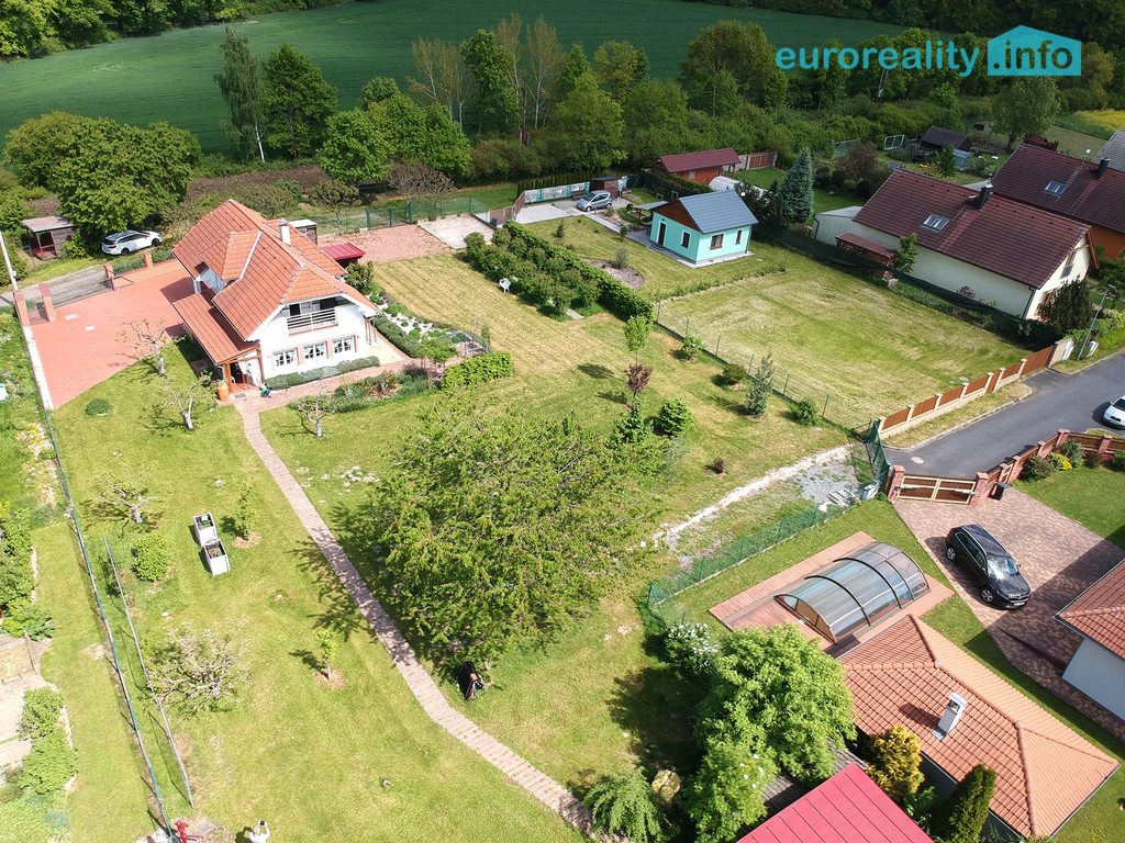 Pozemek je celkem o rozloze 2 168 m2 a skládá se ze dvou pozemků. Na jednom, o velikosti 1 168 m2, stojí dům a zahradní domek. Druhý pozemek o velikosti 1 000 m2 slouží jako zahrada a je možné ho využít na další výstavbu. Má samostatný vjezd i sítě na stavbu domu.