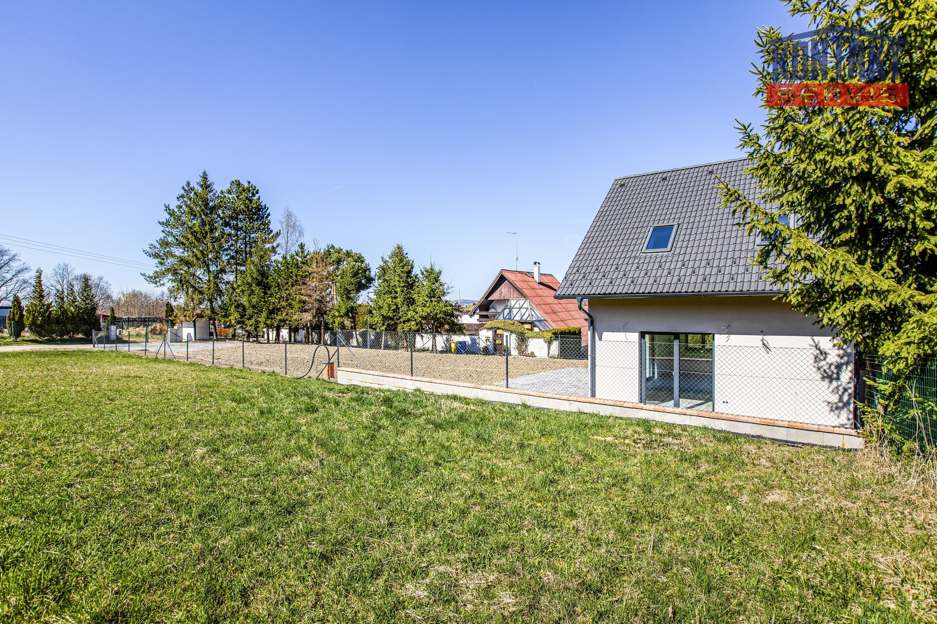 Oplocená zatravněná zahrada o rozloze cca 500 m² orientovaná na východ, jih i západ – slunce vás bude provázet celý den od rána až do večera!