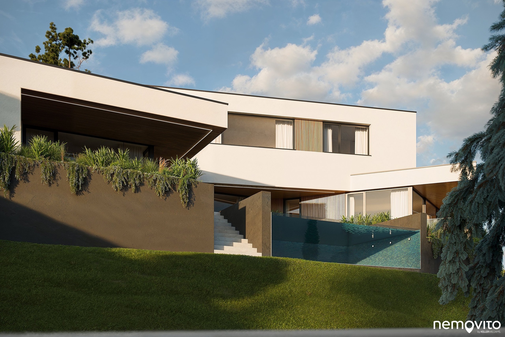 Návrh domu pracuje se zelenou střechou a maximálně respektuje ráz okolí. Ačkoliv je svými rozměry honosný, architektonickému studiu se podařilo objemnou stavbu navrhnout tak, aby po všech stránkách zapadala. Svůj podíl na tom nese také svažitý pozemek, který byl podmínkou zadání.