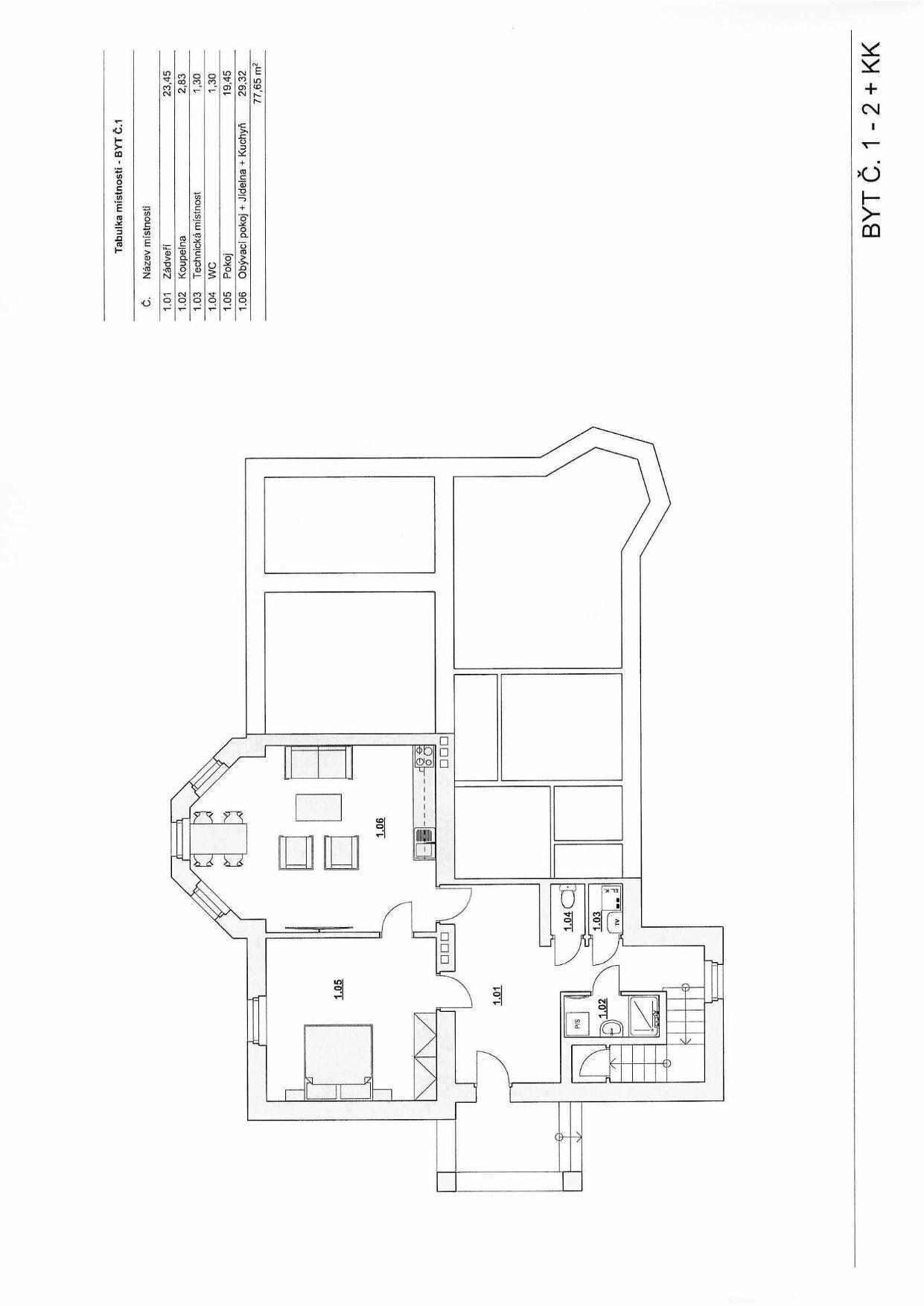 | Dispozice/podlahová plocha: | 2+kk/70 m² |