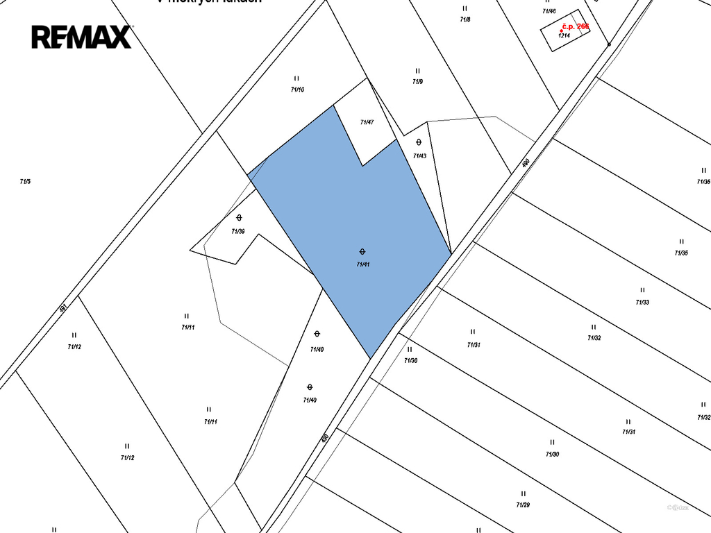 Příjezdová komunikace: pozemek je dobře přístupný z místních komunikací, což zajišťuje jeho bezproblémovou dopravní dostupnost.