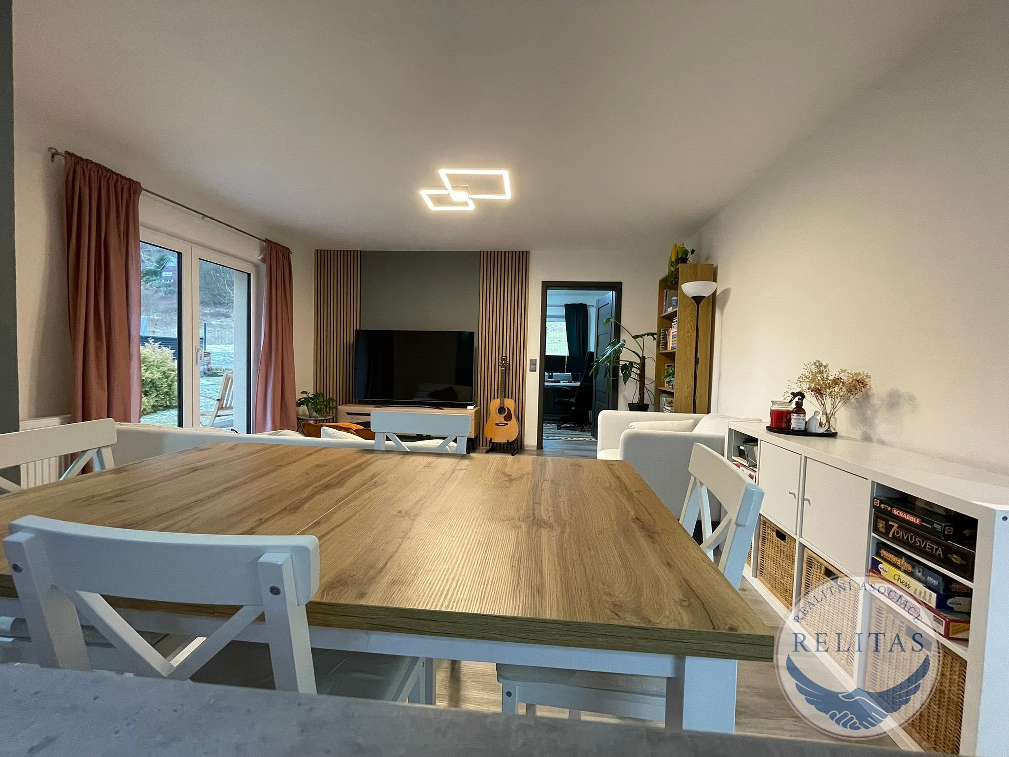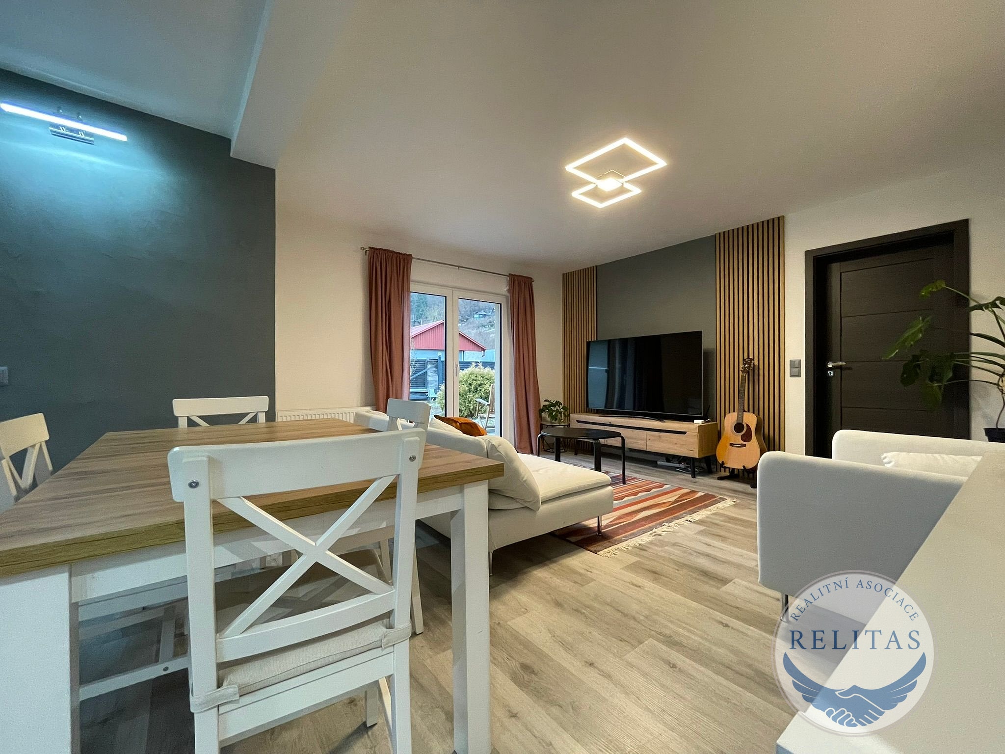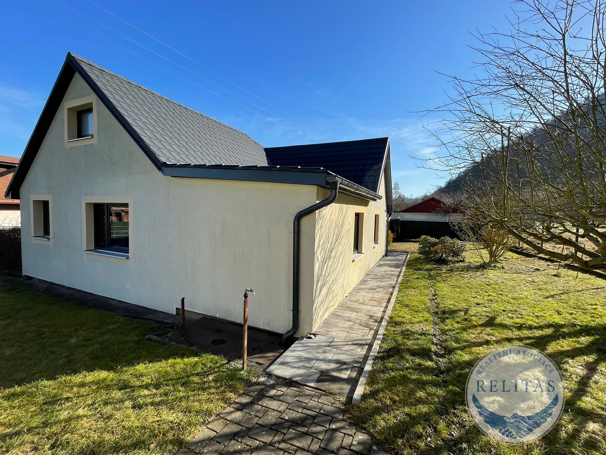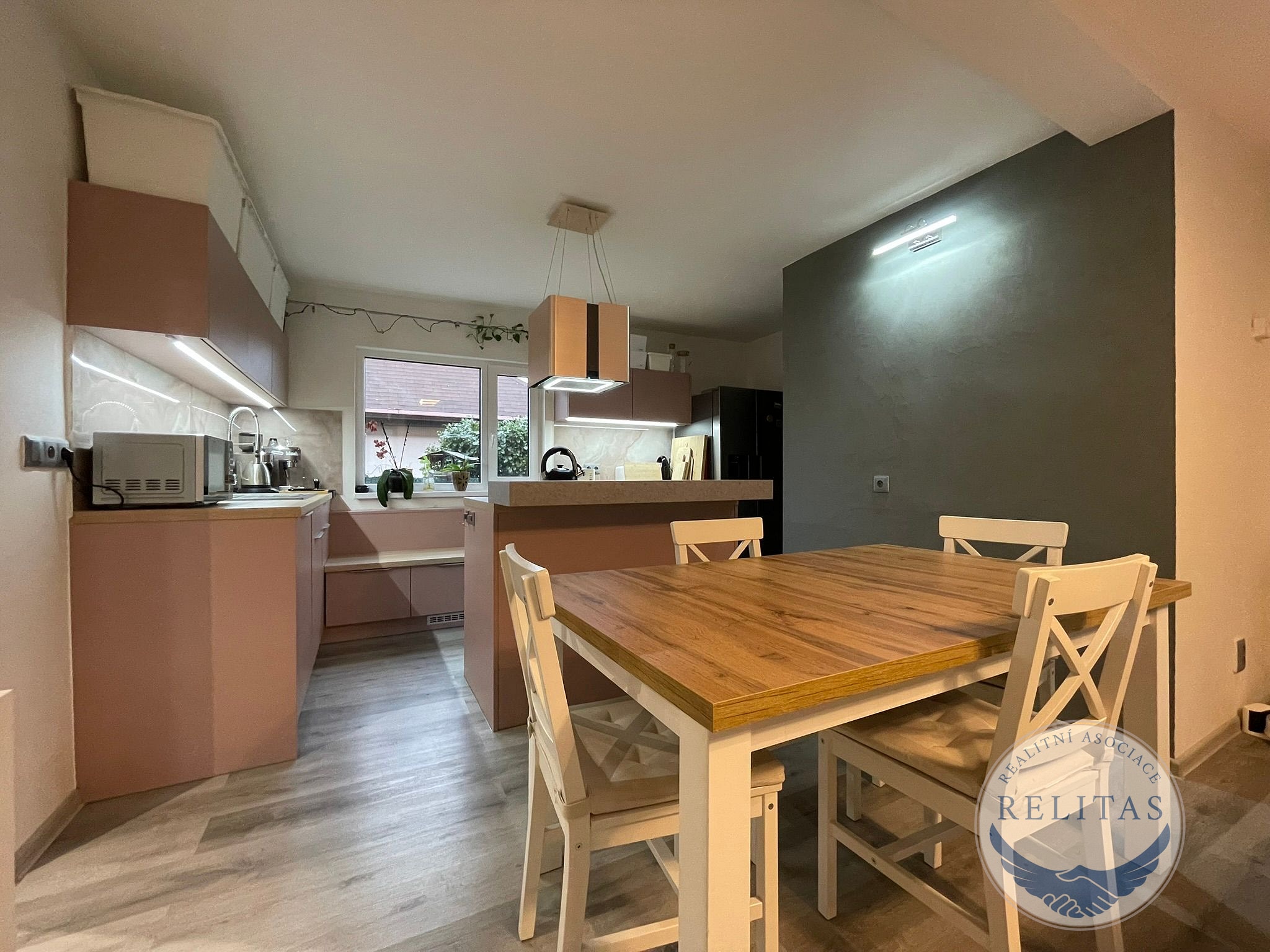 Srdcem domu je moderní kuchyňská linka s ostrůvkem a barovým pultem (stáří 2 roky), plynule navazující na obývací část. Obývací pokoj je krásně prosvětlený díky francouzskému oknu se vstupem na terasu, které propojuje interiér s venkovním posezením a zahradou. Koupelna je kompletně zrekonstruovaná, vybavená vanou a prostorným sprchovým koutem bez vaničky (walk-in). Podlahy tvoří kvalitní vinyl a dlažba, okna jsou plastová, fasáda je zateplená.